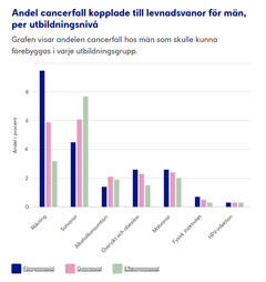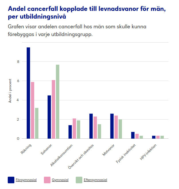 Med hjälp av Institutet för Hälso- och Sjukvårdsekonomi har Cancerfonden tittat på de 11 påverkbara riskfaktorerna för cancer, i enlighet med den europeiska kodexen mot cancer. Det är första gången någonsin i Sverige som även socioekonomiska faktorer vägts in i beräkningarna för att kunna avgöra hur cancerrisken är fördelad i samhället.