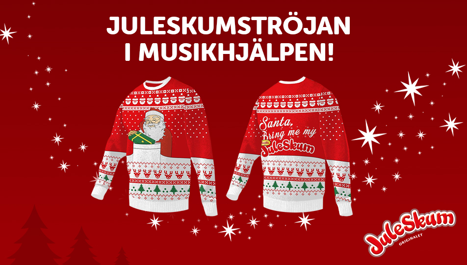 Cloetta Juleskum är en omåttligt populär produkt till jul och åtgången på både originalet och de olika årssmakerna är väldigt stor. Vi svenskar äter i genomsnitt mer än 30 Juleskumtomtar per person varje år. Dessutom är det ett väldigt stort intresse för Juleskums jultröjor. Cloetta har under några år tagit fram unika tröjor med Juleskum inför jul. Under de första åren var upplagorna väldigt begränsade och ett sådant exemplar har Muharrem Demirok haft i sin ägo. Nu väljer han att auktionera ut den till förmån för Musikhjälpen, som i år har temat ”Ingen ska behöva dö av hunger”.
