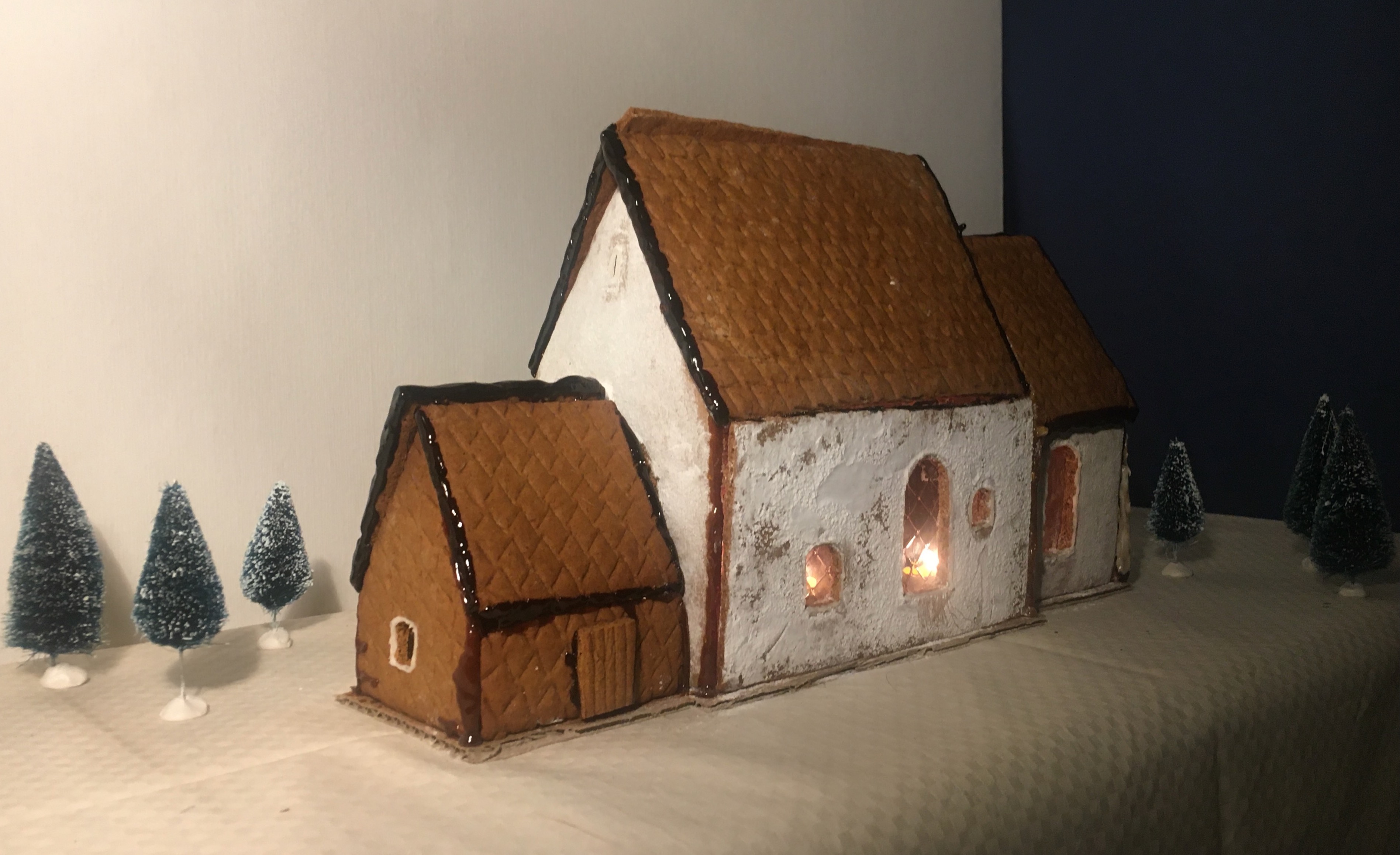 För en historiskt välgjord pepparkakskyrka som håller hög kvalitet och efterliknar originalet. Fin patina på putsen. Med stor uppfinningsrikedom och omsorgsfullhet i teknikvalen.