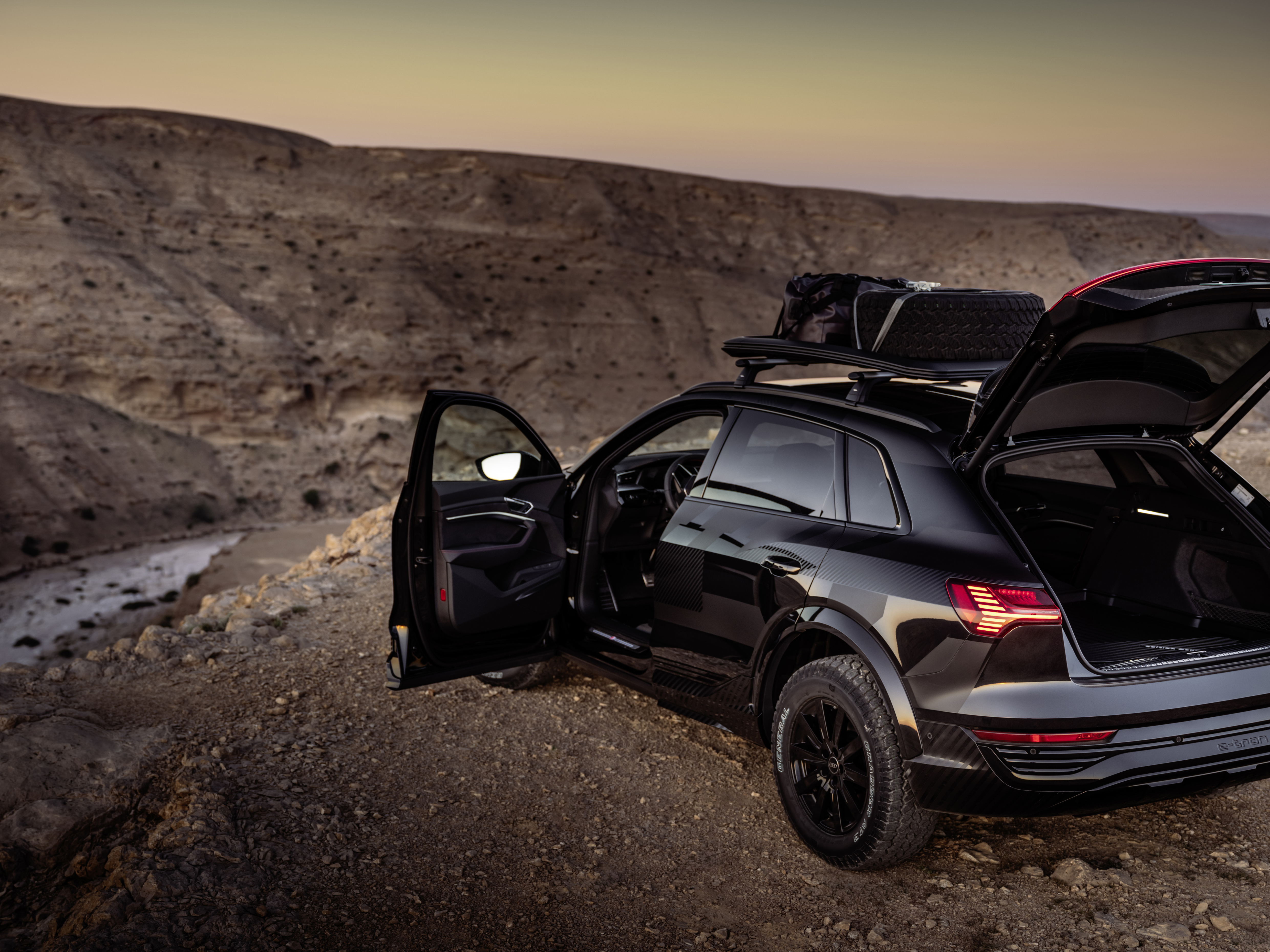 Den robusta utrustningen i Q8 e-tron Dakar edition är anpassad för funktionalitet. Förvarings- och bagageutrymmespaket ingår i grundutförandet. Den slitstarka bagagerumsmattan och de robusta golvmattorna har Edition-märkning. Specialmodellen levereras även med taklasthållare med en lastkapacitet på 40 kg som standard. Till det ingår en väska och remmar för att fästa tillbehör. I standardutrustningen ingår även ett extra laddningsuttag för typ 2 (CCS2). Dessutom erbjuder e-trons laddningssystem allt som äventyrslystna behöver för att ladda sin bil – hemma, med vänner eller på semestern.