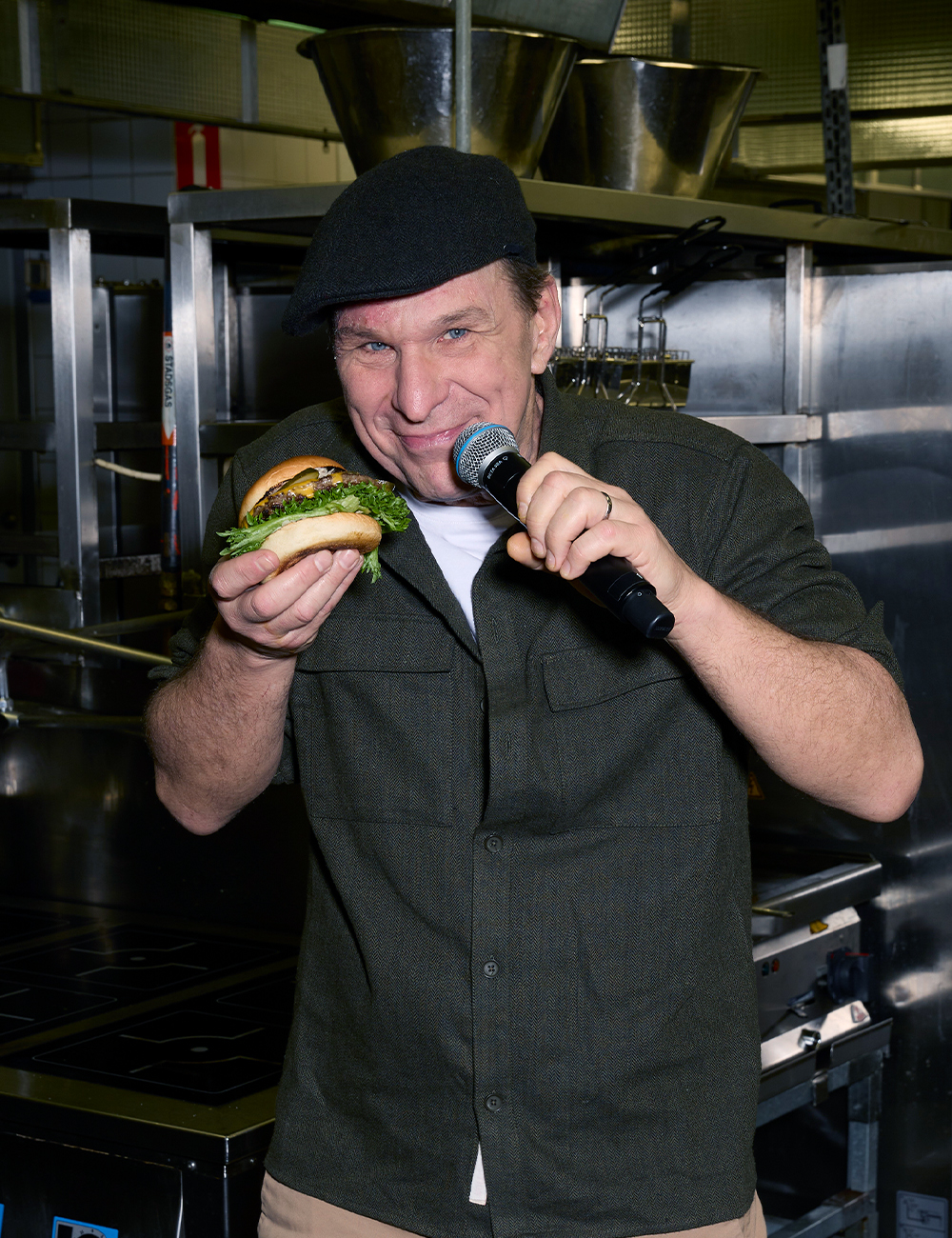 Gästerna serveras en hamburgare som knyter an till respektive artist och får samtidigt en timmes underhållning i en form som är intimare än de klassiska krogshowerna på Börsen