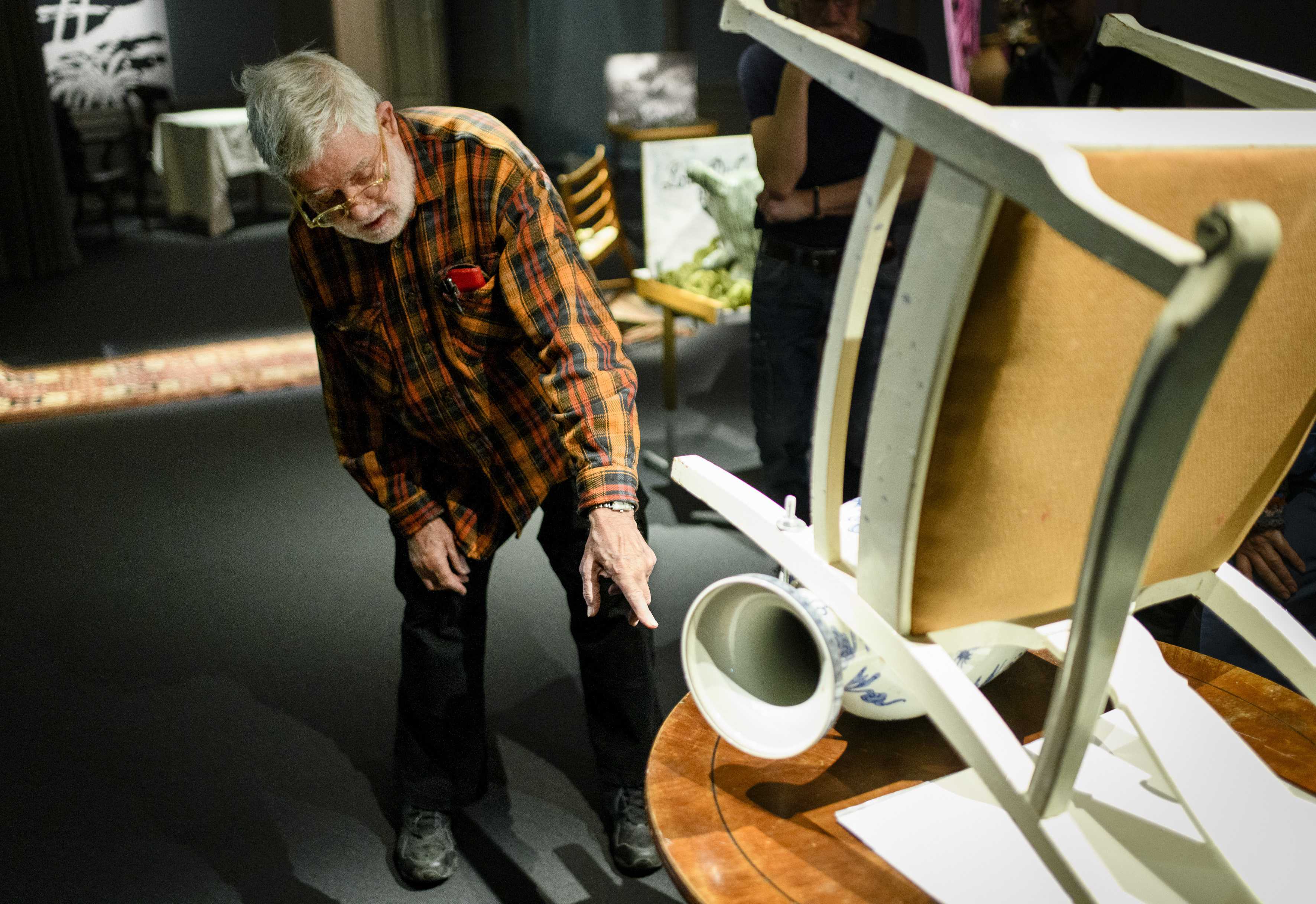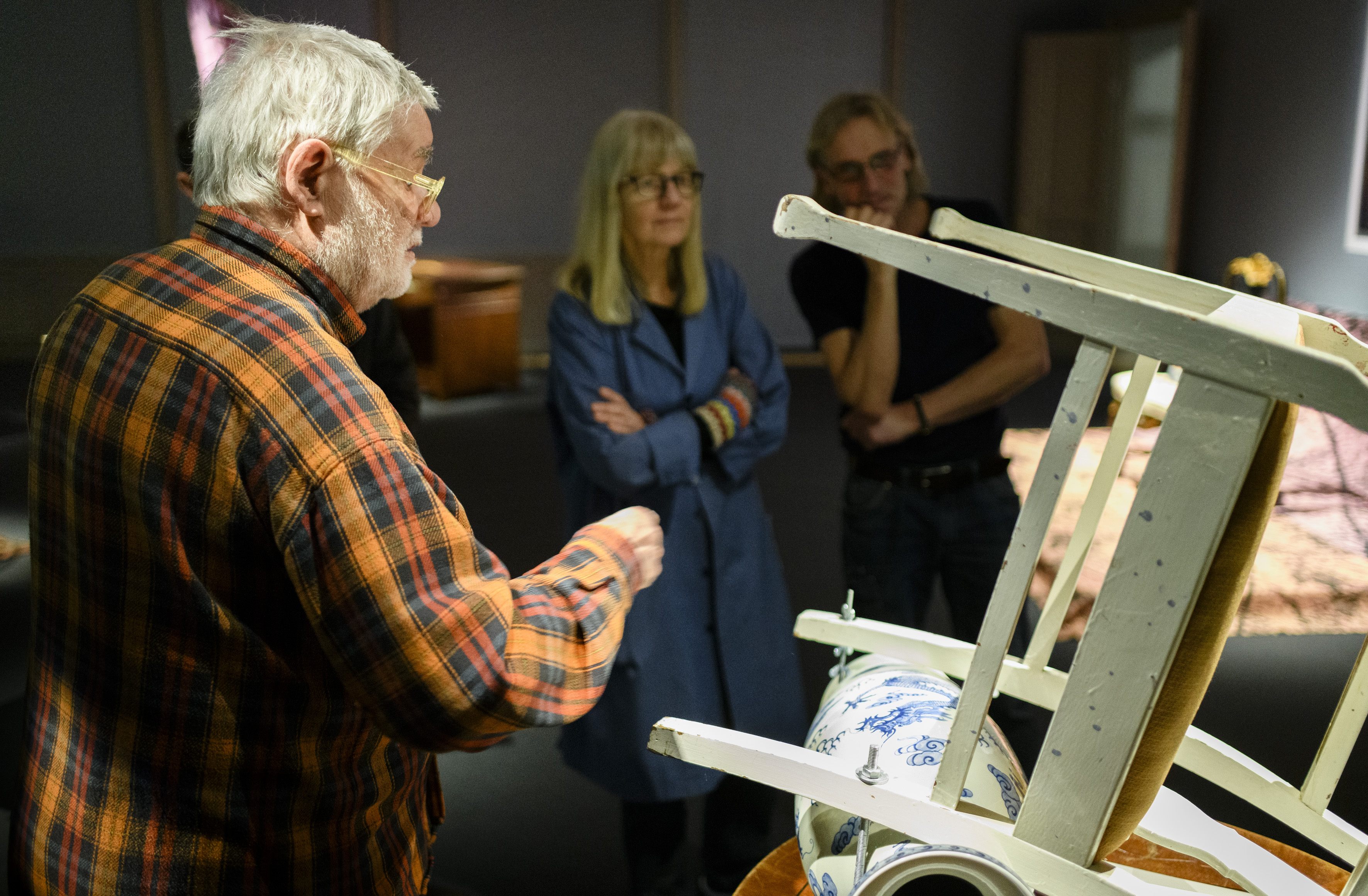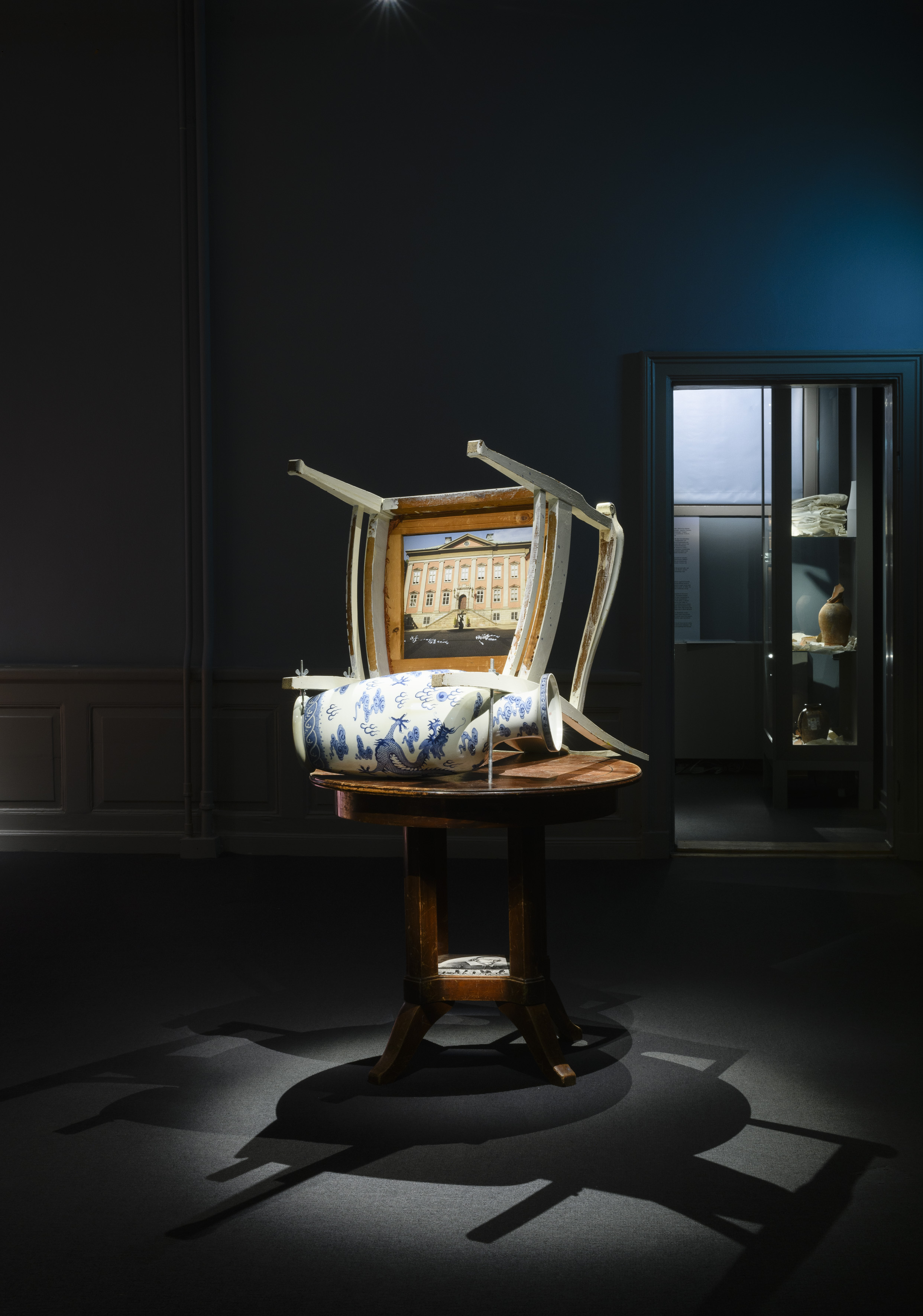I Carl Johan De Geers utställning ”Släkten och slavarna” har möbler, tyger och bilder sammanfogats till sju olika installationer. De berättar om konfrontationen med den egna släktens inblandning i slaveriet på 1600-talet. Det handfasta arbetet, att spika och snickra på installationerna, kan ses som ett sätt att bearbeta denna omskakande upptäckt.