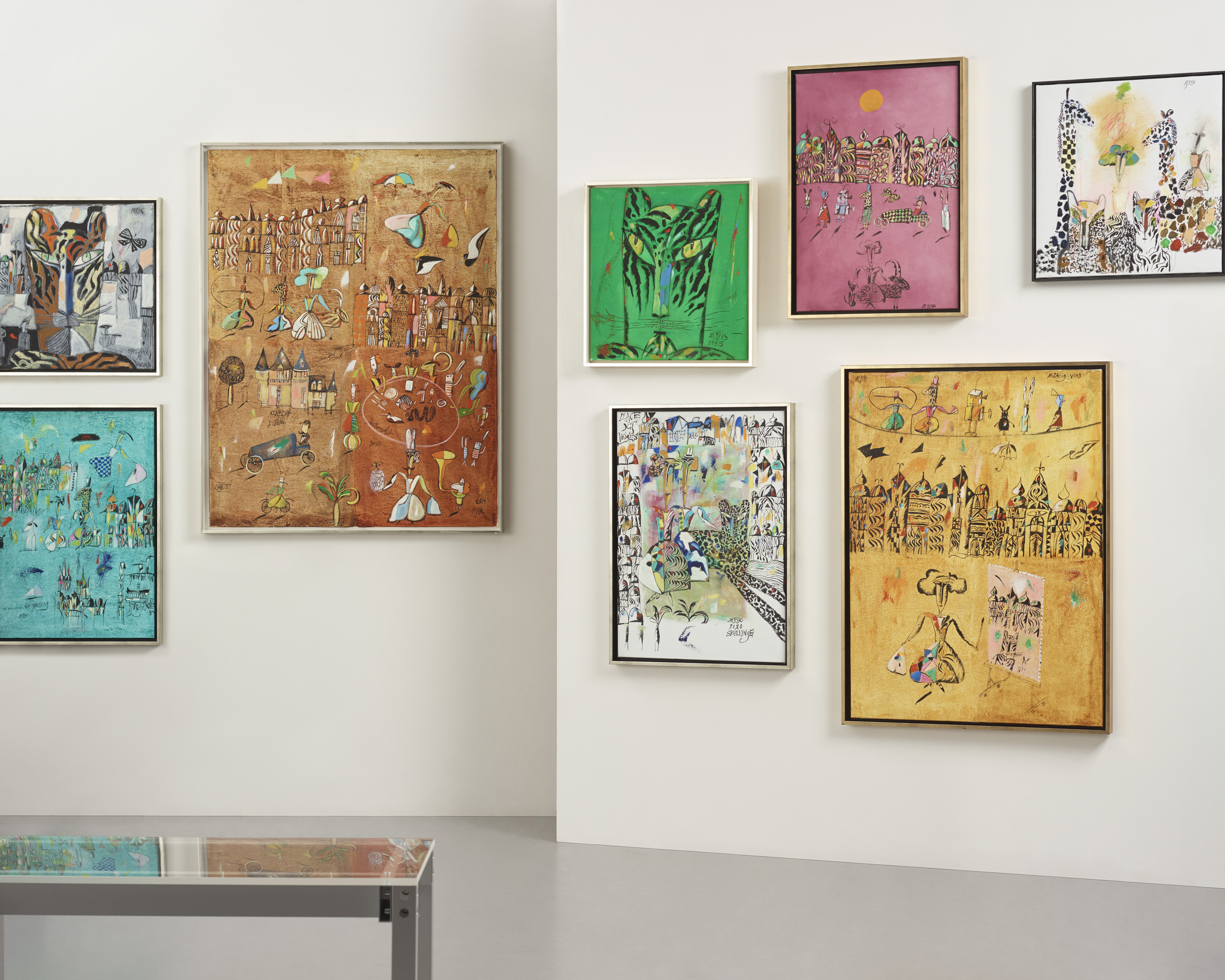 ”Tanken med utställningen är att vi ska stanna upp och påminna oss om vad som är viktigt. För oss. Allt går ju så fort nu. Alldeles för fort. Djuren. De är det ingen som verkar tänka på. Allt som håller på att försvinna. Fjärilarna. Du ser ju hur djuren står på rad i mina målningar och liksom frågar vad vi håller på med. Alla mina målningar är frågor”, kommenterar Madeleine Pyk.