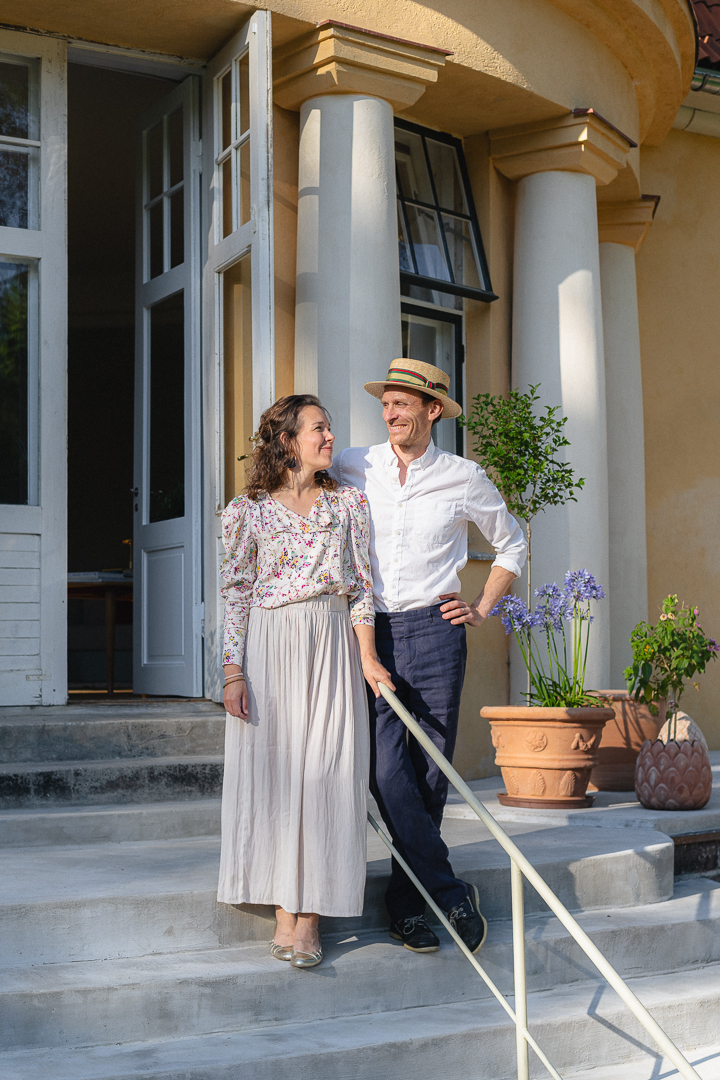 Grundarna, Taina och Chris Langenskiöld, med gårdens åsnor. Foto: Riitta Sourander