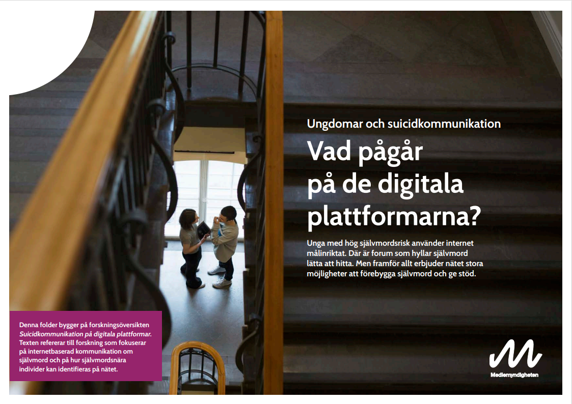 I Mediemyndighetens nya informationsfolder Ungdomar och suicidkommunikation: Vad pågår på de digitala plattformarna? ges en aktuell översikt i ämnet samt råd om vad vi bör tänka på kring digital suicidkommunikation bland ungdomar och unga vuxna.