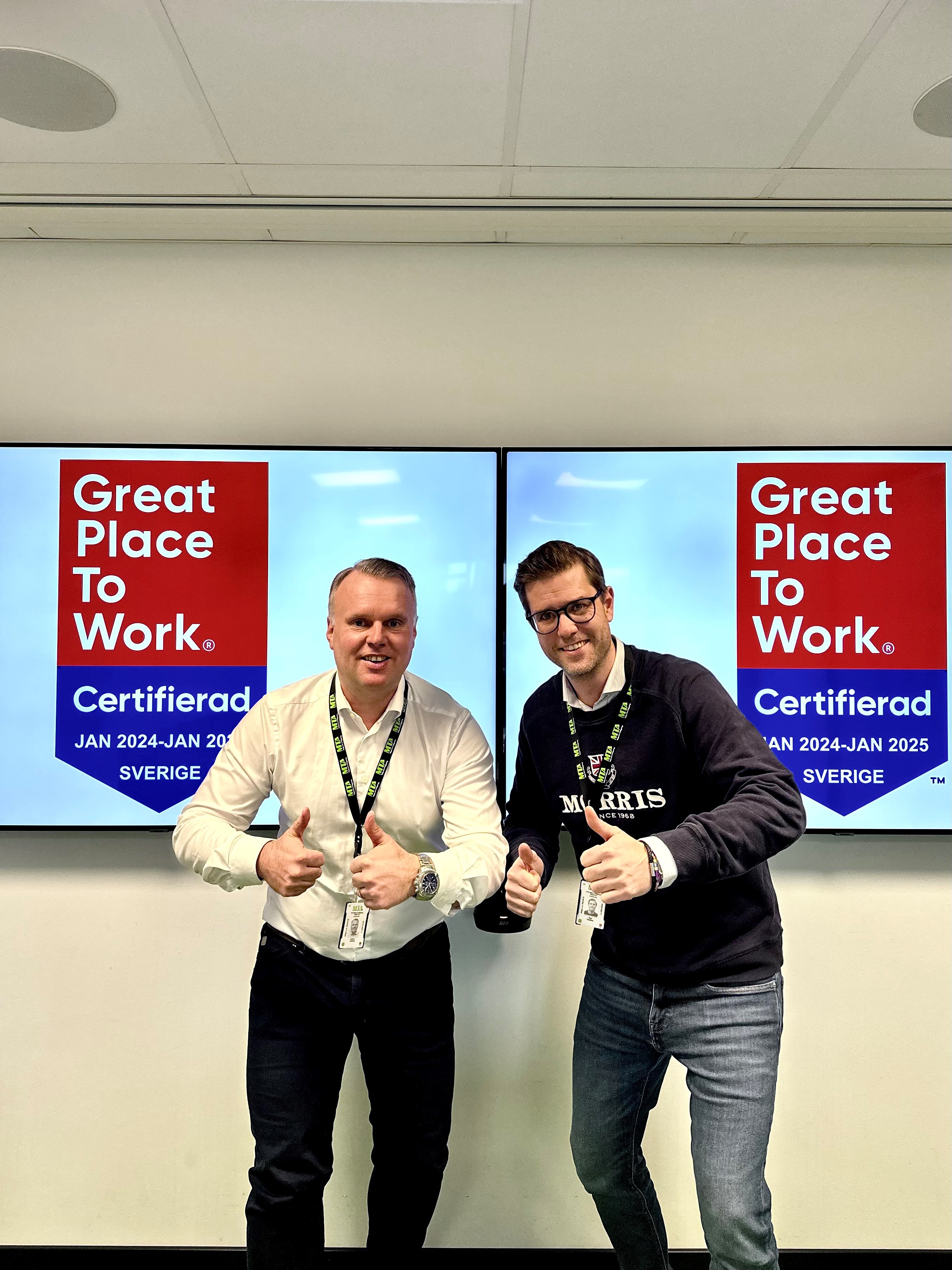 MTA certifierade som Great Place To Work