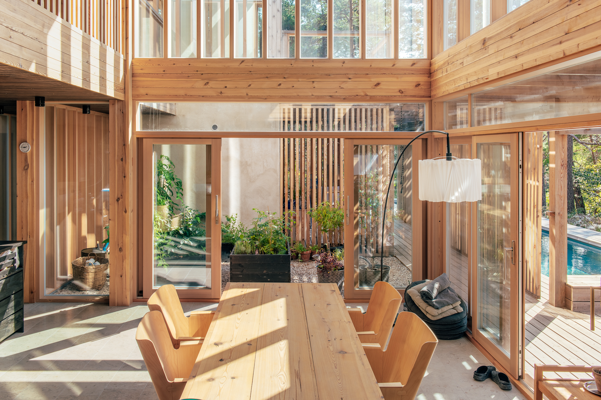 Att vandra runt i villa Meltem är som att kliva rakt in i arkitekturens grammatik och få uppleva den breda palett som finns men som alltför sällan nyttjas. Huset går inte att greppa vid första anblicken utan upptäcks gradvis. Här finns alla typer av rumsligheter, från slutna rum till halvöppna, under tak eller i lä. Man rör sig från rum med dubbel takhöjd till snäva och låga där man sitter nära golvet. Det är en upptäcktsfärd för sinnena, att färdas utan att resa bort och där trä är en ständig följeslagare.