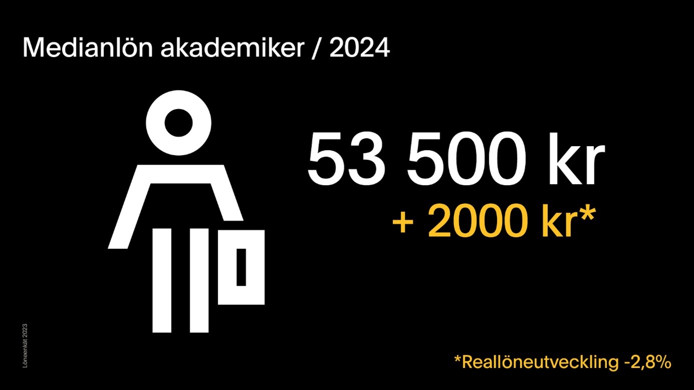 Trots ökad medianlön kan de akademiker som Akavia samlar mot bakgrund av den höga inflationen köpa färre varor och tjänster för samma lön. Med hänsyn till inflationen var reallöneutvecklingen, löneutveckling minus inflation, istället -2,8 procent under 2023.