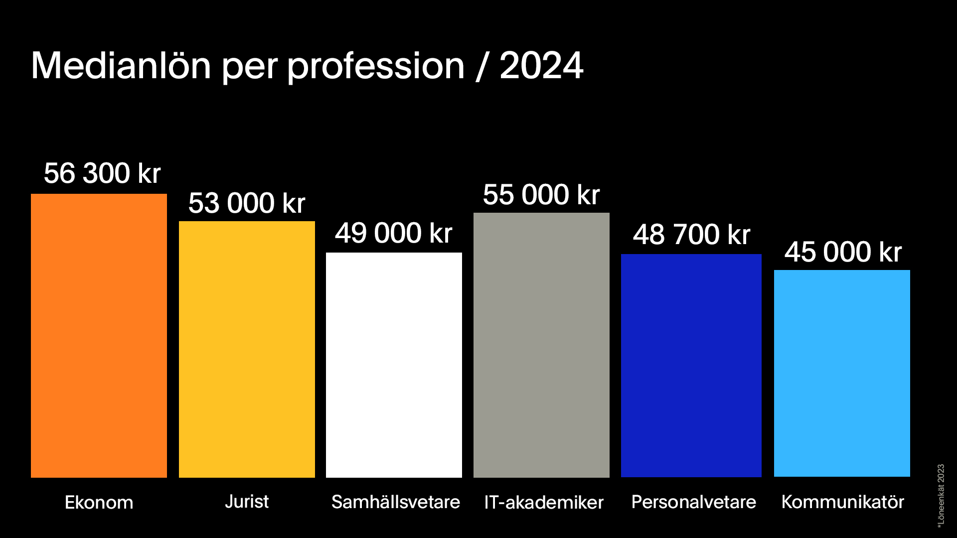 Nu publicerar Akavia lönestatistik för 2023, baserad på svar från 44 250 akademiker från förbundets sex utbildningsinriktningar; ekonomi, juridik, samhällsvetenskap, personalvetenskap, systemvetenskap och kommunikation. Den visar att ekonomerna fortsatt har högst medianlön medan kommunikatörerna ökade mest i lön jämfört med året innan (2 300 kr). Juristerna, som placerar sig trea i lönetoppen, sticker ut med sämst löneutveckling jämfört med året innan (1 500 kr). 2023 är medianlönen för Akavias medlemmar 53 500 kronor per månad, vilket är 2 000 kr mer än året innan.