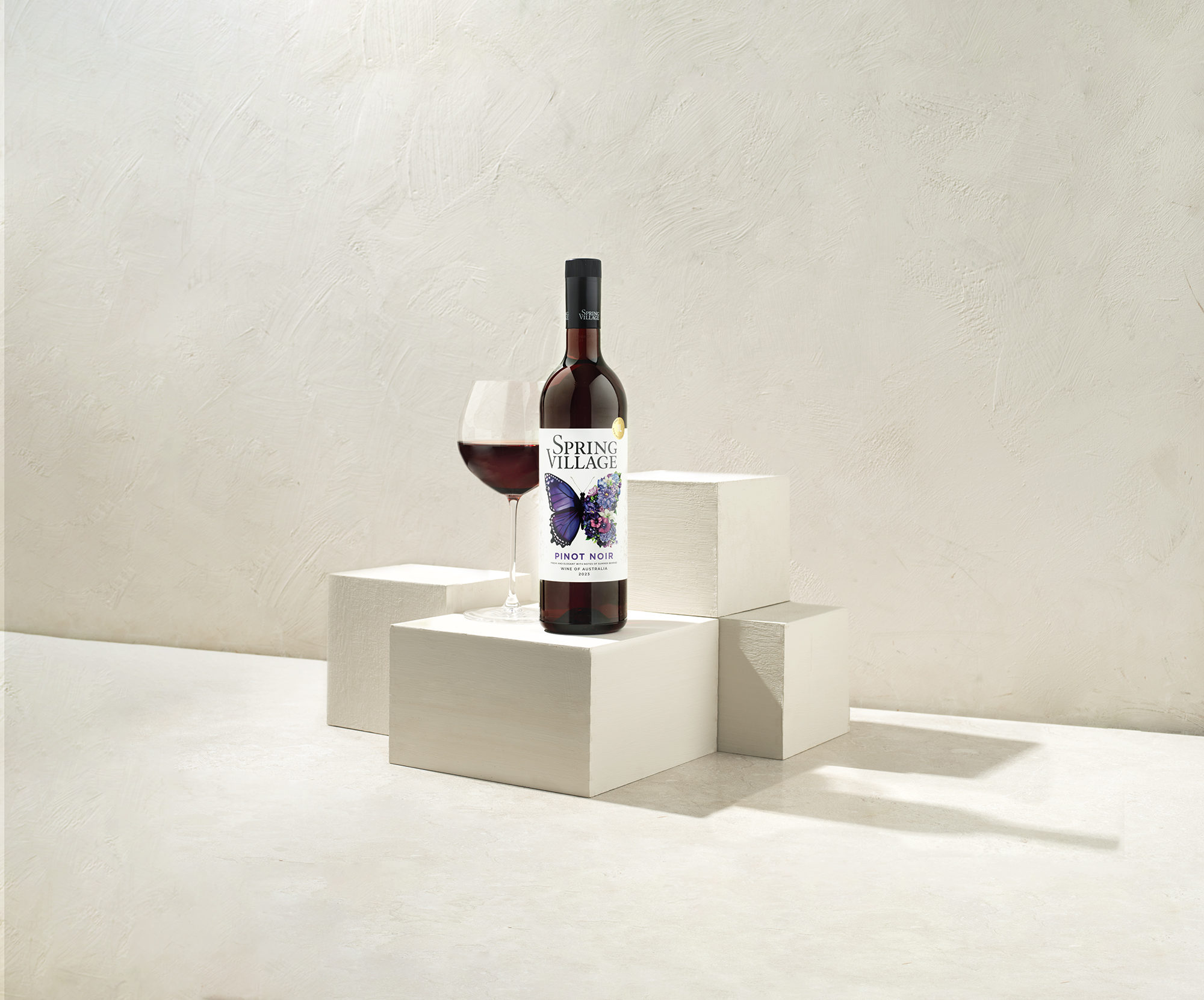 Resultatet är ett lättare vin i en underbart hallonröd färg. Doften är bärig och fylld med toner av både röda och mörka bär. Smaken är karaktäristiskt pinot noir-lätt i en fruktig stil med en underbar bärighet och toner av viol. Vinet har också en härlig örtighet som piggar upp det mesta samt ett nyanserat och kryddigt avslut. Spring Village Pinot Noir är en perfekt pusselbit i Spring Village-rangen, som med sin friska lätthet kompletterar den mer kraftfulla systern tillika storsäljaren Spring Village Merlot som har funnits med i sortimentet sedan start.