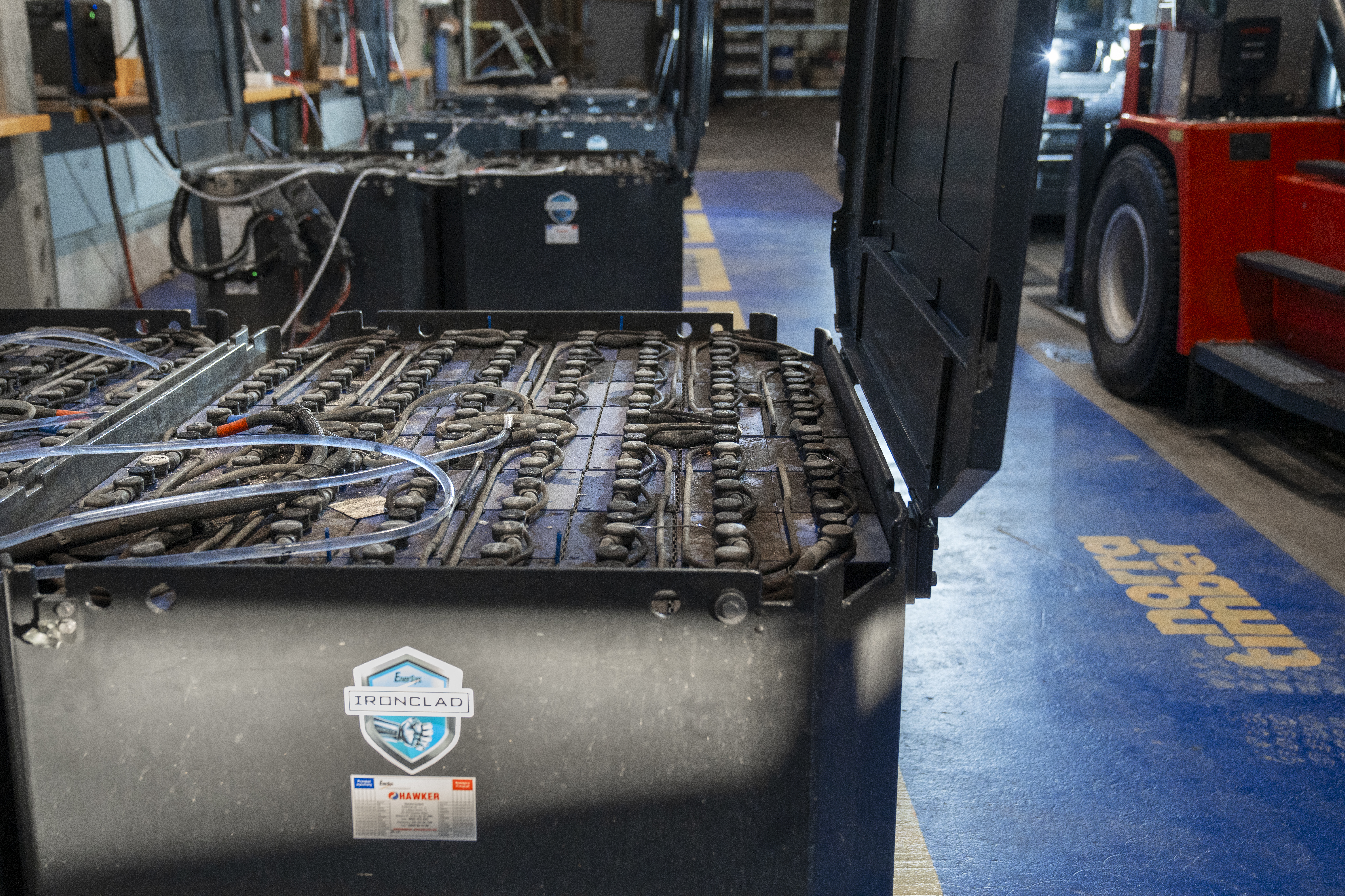 – Vi har en automatik i laddarna som visar vilket batteri som ska väljas när det är dags att byta batteri. Att rätt batteri väljs är jätteviktigt för batteriets livslängd – batteriet måste få sin vilotid innan användning, det är ingenting chauffören behöver räkna ut själv eller hålla reda på, utan det är elektroniskt och styrt via lampor och skyltar som pekar på det batteri som ska användas just nu, säger Joakim Jonasson.