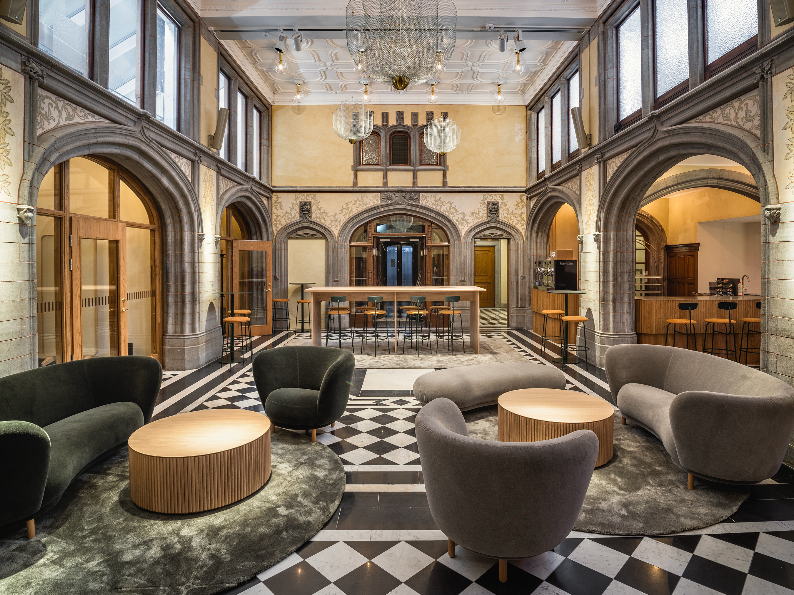 Ur juryns motivering: ”Smala djupa ljusgårdar, olika våningshöjder och begränsade rumsstorlekar har varit utmanande. Nu har få men viktiga grepp i modernt formspråk gett funktionell planlösning med sammanfogade ytor.” Arkitekt är Marge Arkitekter och Anderwald Studio, beställare: Axfast och Boston Consulting Group.