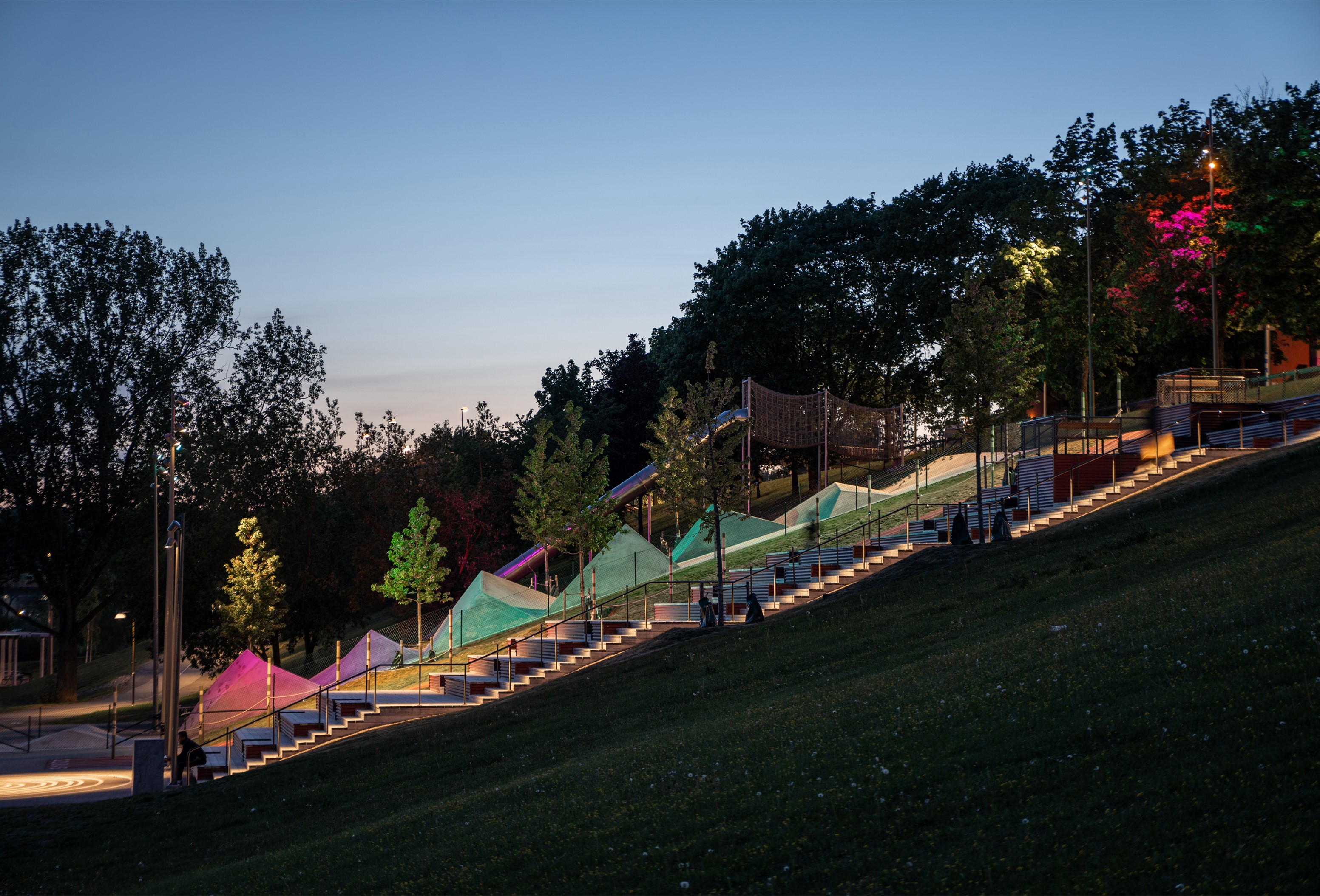 Ur juryns motivering: ”Juryn vill lyfta fram aktivitetsslänten i Tensta som ett lyckat utropstecken i en vidsträckt parkmiljö. Anläggningen är lekfull, färgstark och rörelsefrämjande.” Arkitekt är Nivå Landskapsarkitektur och beställare Trafikkontoret, Stockholms stad.