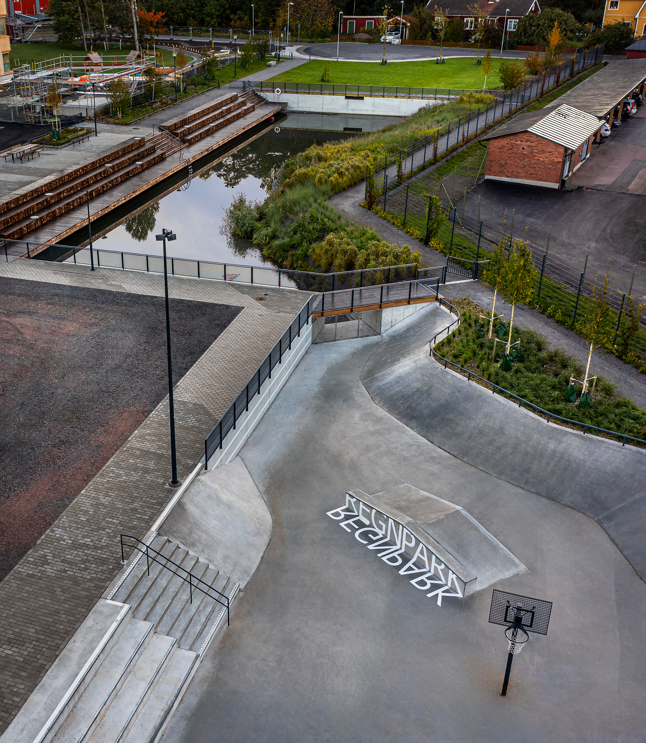 Parken innehåller både dagvattendamm, skyfallsanläggning, skejtpark och basketplan. Därigenom visar den hur två aktuella samhällsproblem – hantering av klimateffekterna och behovet av ökad rörelse för folkhälsa – kan tas om hand i svensk landskapsarkitektur. Arkitekt är Karavan landskapsarkitekter och beställare Uppsala kommun.