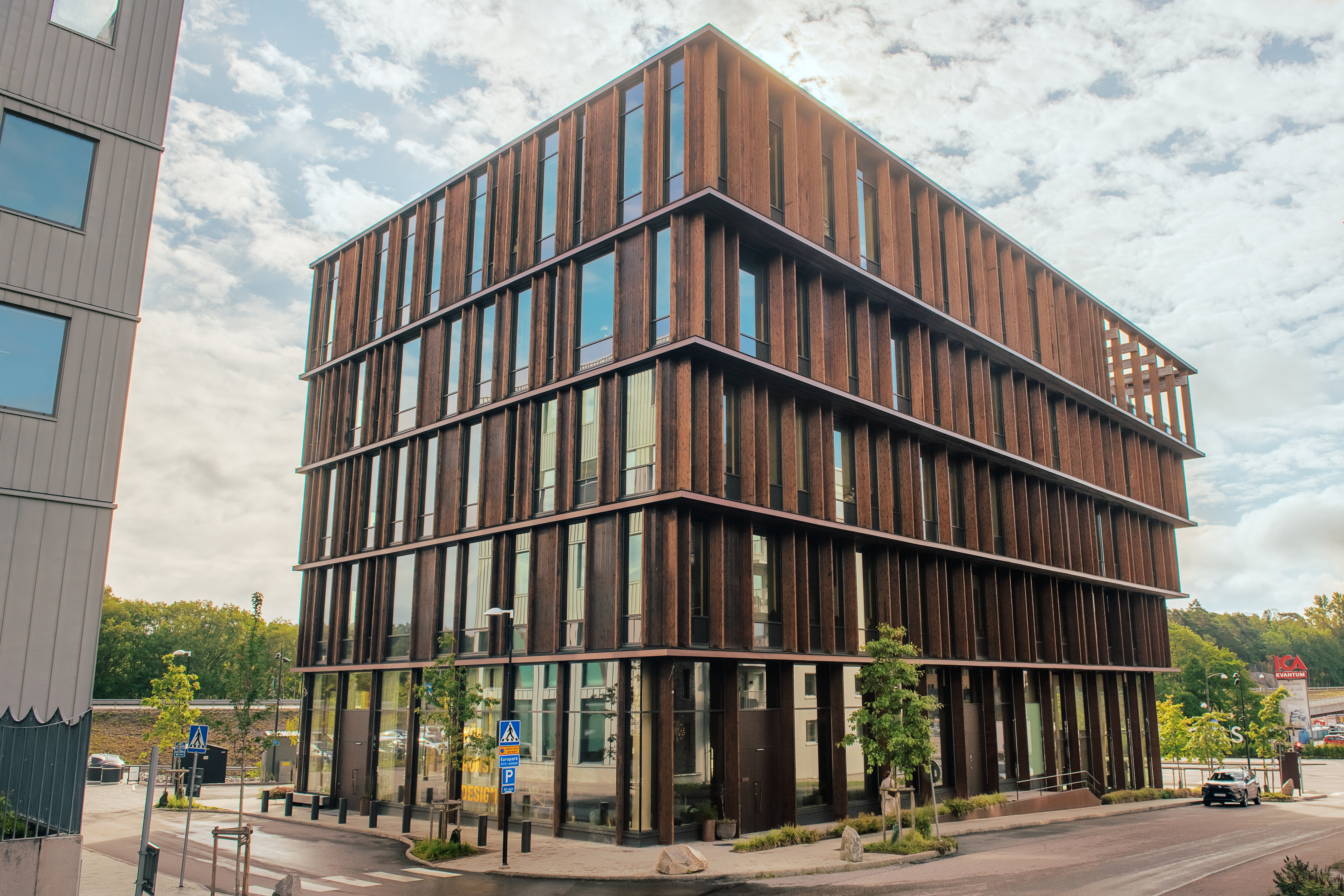 Byggnaden är en uppvisning i hur en rationell och flexibel kontorsbyggnad kan vara både robust och elegant. Den synliga trästommen tillsammans med våningarnas utkragningar skapar karaktär och ger platsen identitet. Byggnadens karaktäristiska silhuett tecknar sig redan på avstånd. Den högresta bottenvåningen bjuder in besökaren och bidrar till att skapa en levande plats. Interiört är materialval och färgskala begränsad för att inte ta fokus från helheten. Placeringen av installationer är väl genomtänkt och de får den underordnande plats de ska ha i en interiör. Ett extra plus för det snygga skyltsystemet.