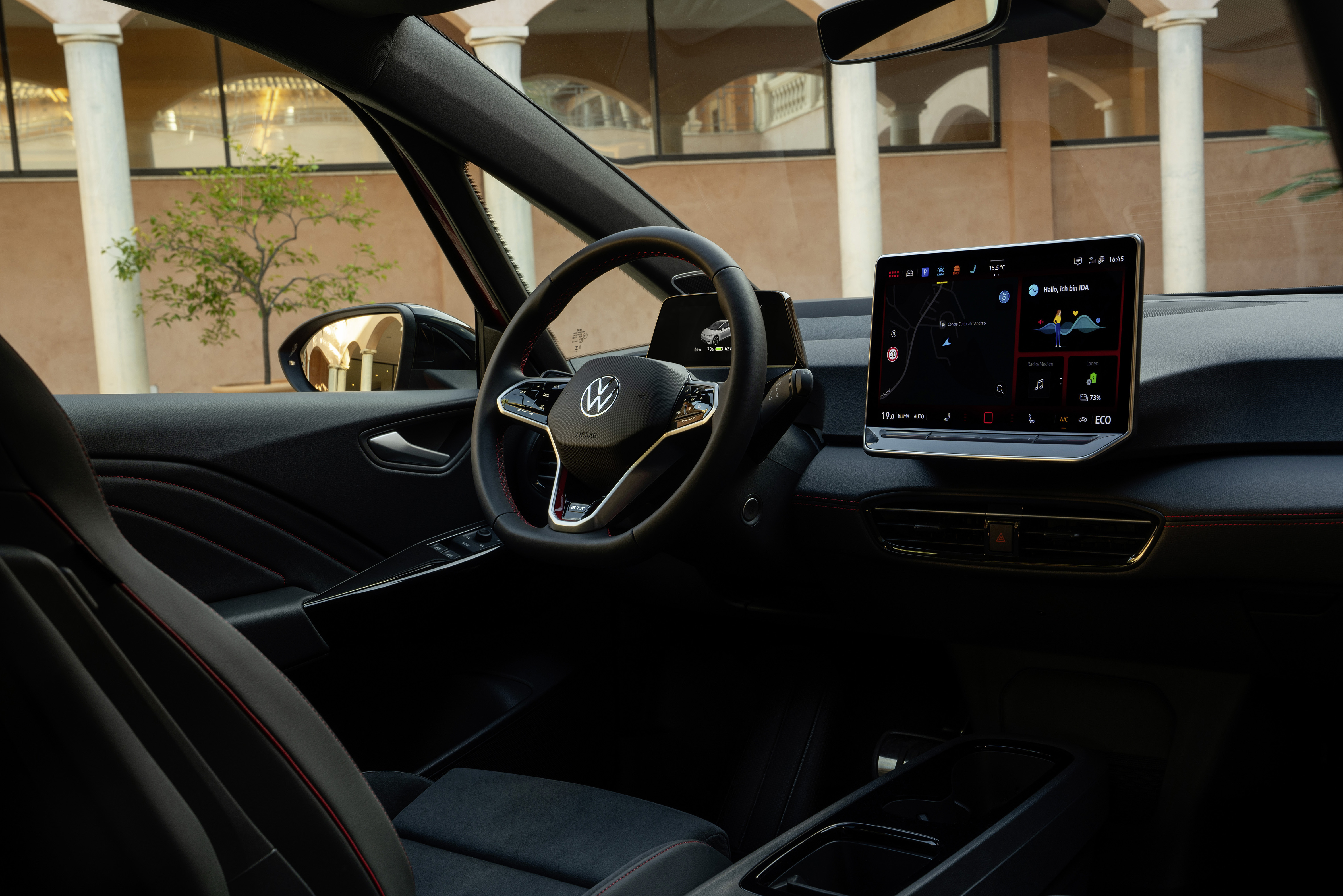 Flera GTX-specifika detaljer invändigt gör även kupén mer personlig. De standardmonterade topsportstolarna (i tyg och konstläder) understryker med sin ergonomi den sportiga karaktären hos de mest kraftfulla versionerna av ID.3. En annan typisk GTX-detalj är de röda dekorsömmarna på sätena och på multifunktionsratten. Den mer kraftfulla ID.3 GTX Performance är dessutom utrustad med den adaptiva chassiregleringen DCC.