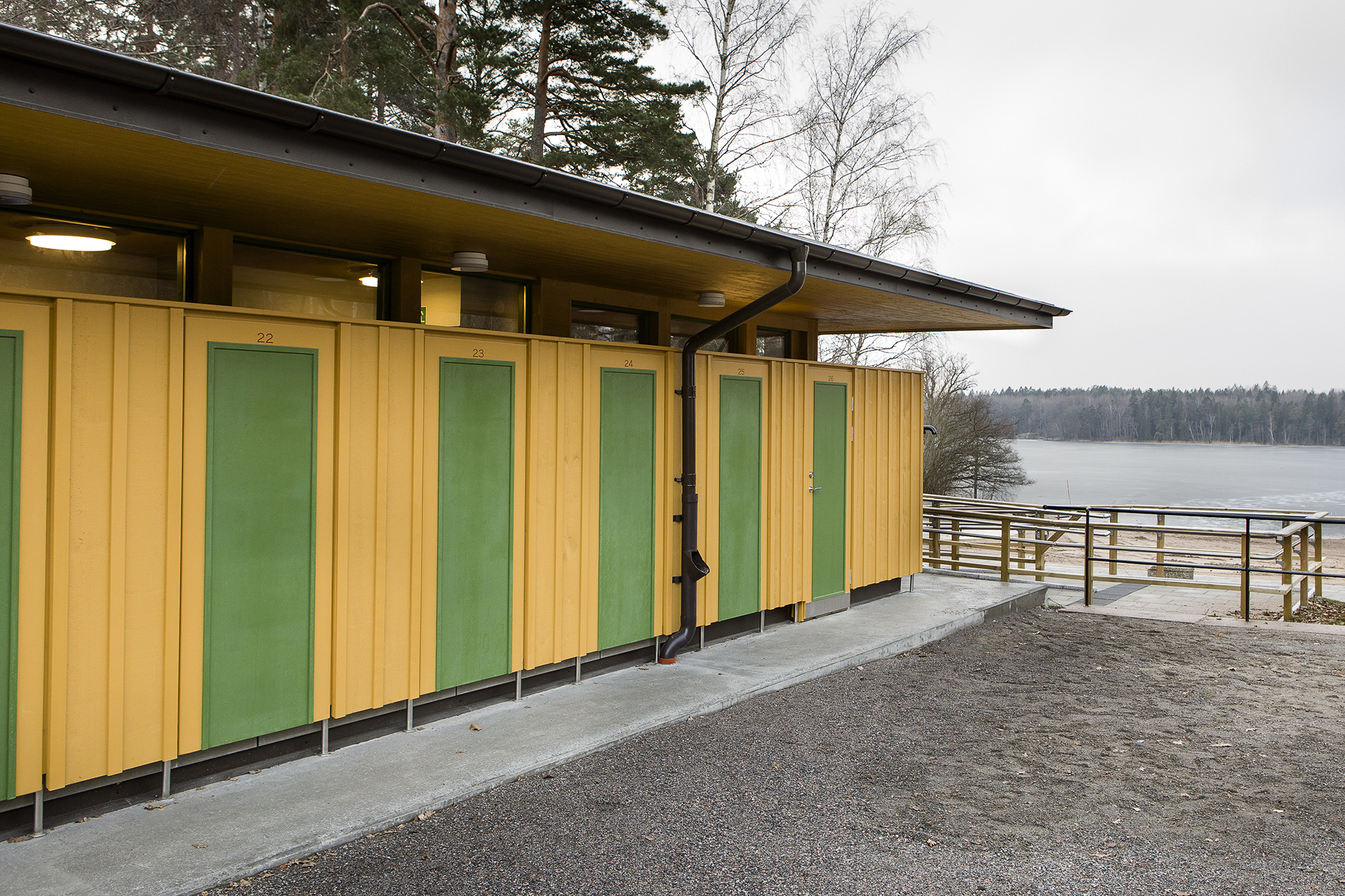 Den nya byggnaden innehåller förutom en bastu, även omklädningsrum, värmerum, toaletter och teknikrum. Utvändigt har byggnaden fått liknande utformning som omkringliggande byggnader.
