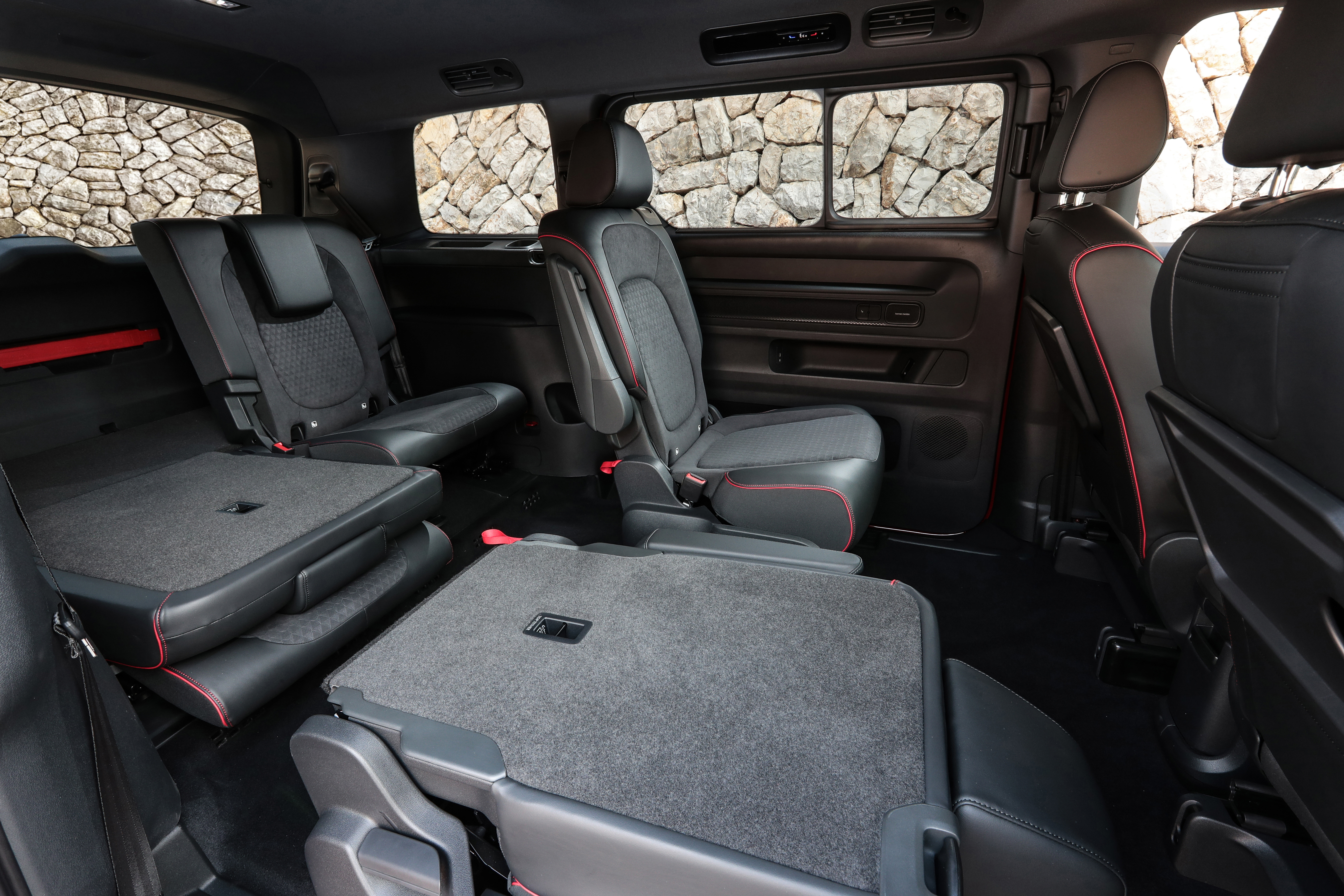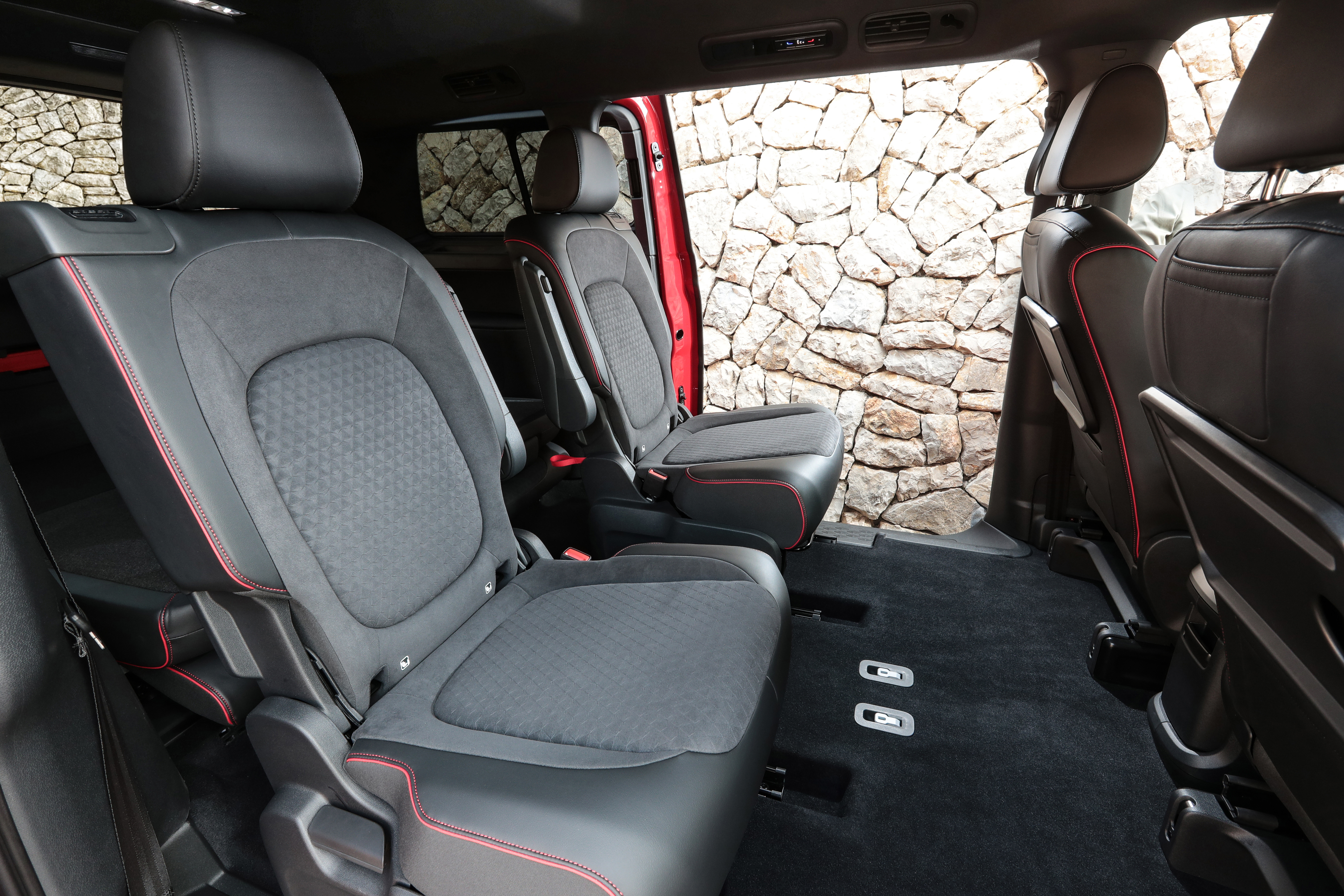 GTX passagerarutrymme. ID. Buzz GTX med standardaxelavstånd finns som 5-sitsig med 40:60-delad 3-sitsig soffa i andra raden (2/3) eller som 6-sitsig3 med två separata säten i både andra och tredje raden (2/2/2). Långa ID. Buzz GTX kan även den konfigureras som fem- och sexsitsig3, men finns dessutom i en sjusitsig version3. Den sjusitsiga versionen har 3-sitsig soffa på andra raden och två separata säten i den tredje raden (2/3/2). Sätena i den andra raden kan flyttas 15 cm i längsriktningen med standardaxelavstånd och 20 cm med långt axelavstånd. Passagerarsätet fram, yttersätena i den andra raden och sätena i den tredje raden är som standard utrustade med ISOFIX-barnstolsfästen.