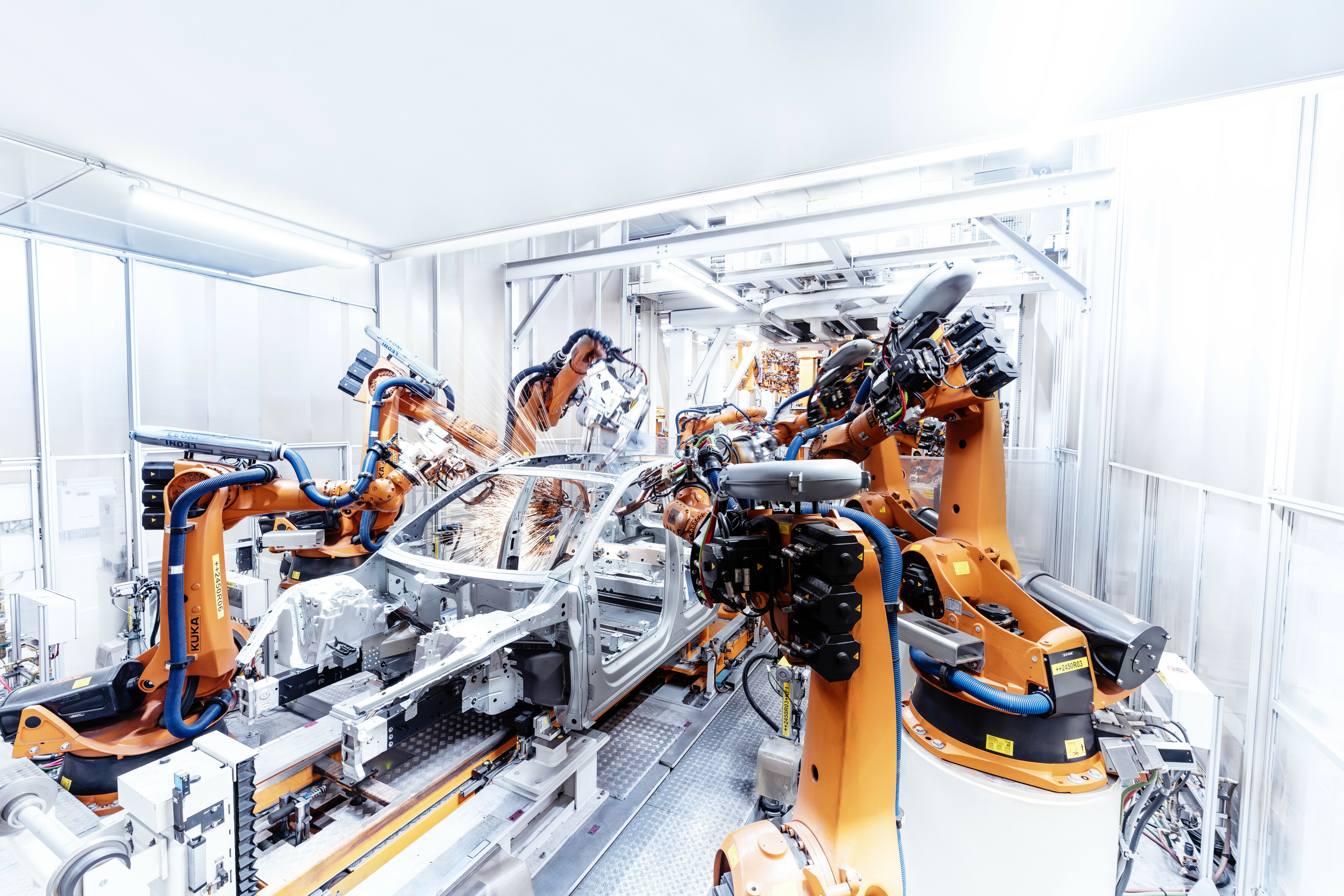 För att göra produktionen av Q6 e-tron-serien både hållbar och effektiv har Audi integrerat karosseriverkstaden i befintlig struktur. Med 328 medarbetare per skift och 1 150 robotar produceras karossdelarna till Audi Q6 med en automatiseringsgrad på 87 procent. Den flexibla utrustningen möjliggör en närmast sömlös lansering av framtida modeller. För att utnyttja resurserna på ett hållbart och synergiskt sätt återanvänder Audi 680 robotar som redan använts för att tillverka andra Audi-modeller. Audi har också driftsatt en ny vagnpark på över 40 självkörande AGV:er (automated guided vehicles) som levererar materialet.
