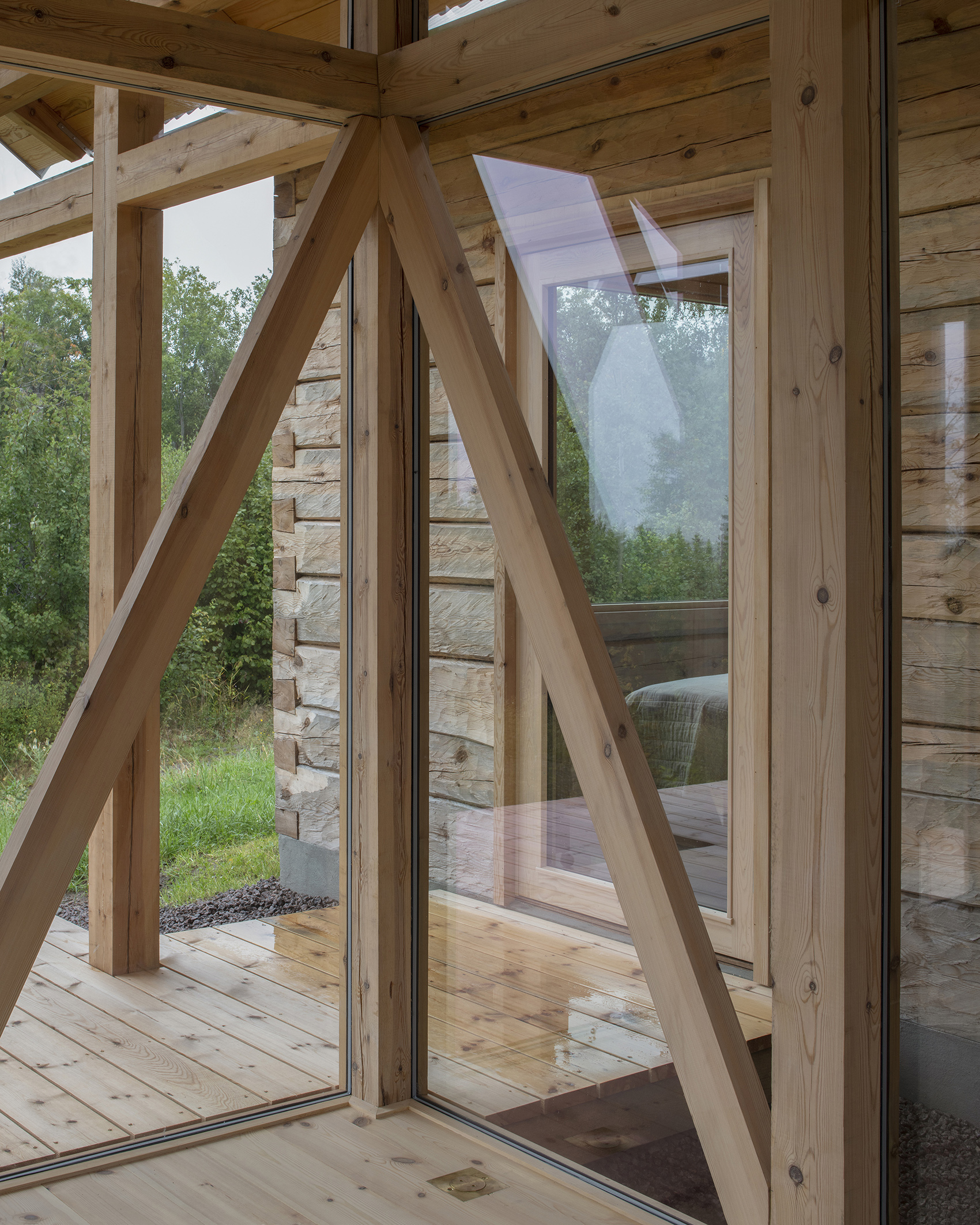 Ett gästhus i flera delar, som är en ensemble präglad av trähantverk, kontraster och en subtil monumentalitet i den lilla skalan.