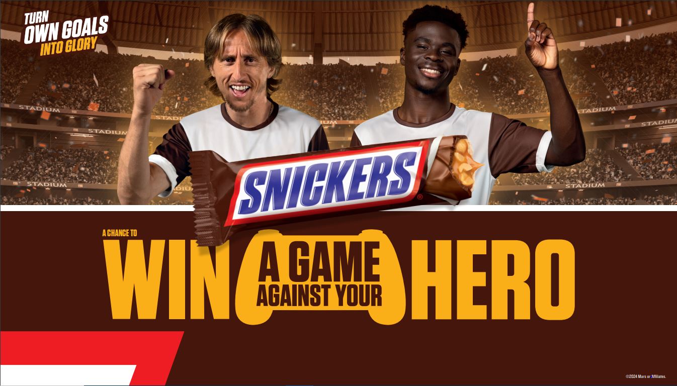 Sverige 25 mars 2024: Idag startar Snickers sin senaste kampanj, tillsammans med fotbollsstjärnorna Luka Modric och Bukayo Saka. Mars Inc, vill genom den här kampanjen hjälpa och stötta fotbollsfans att undvika pinsamma "självmål", genom en Snickers-driven vinnarstrategi för att ta sig förbi dessa olustiga ögonblick.