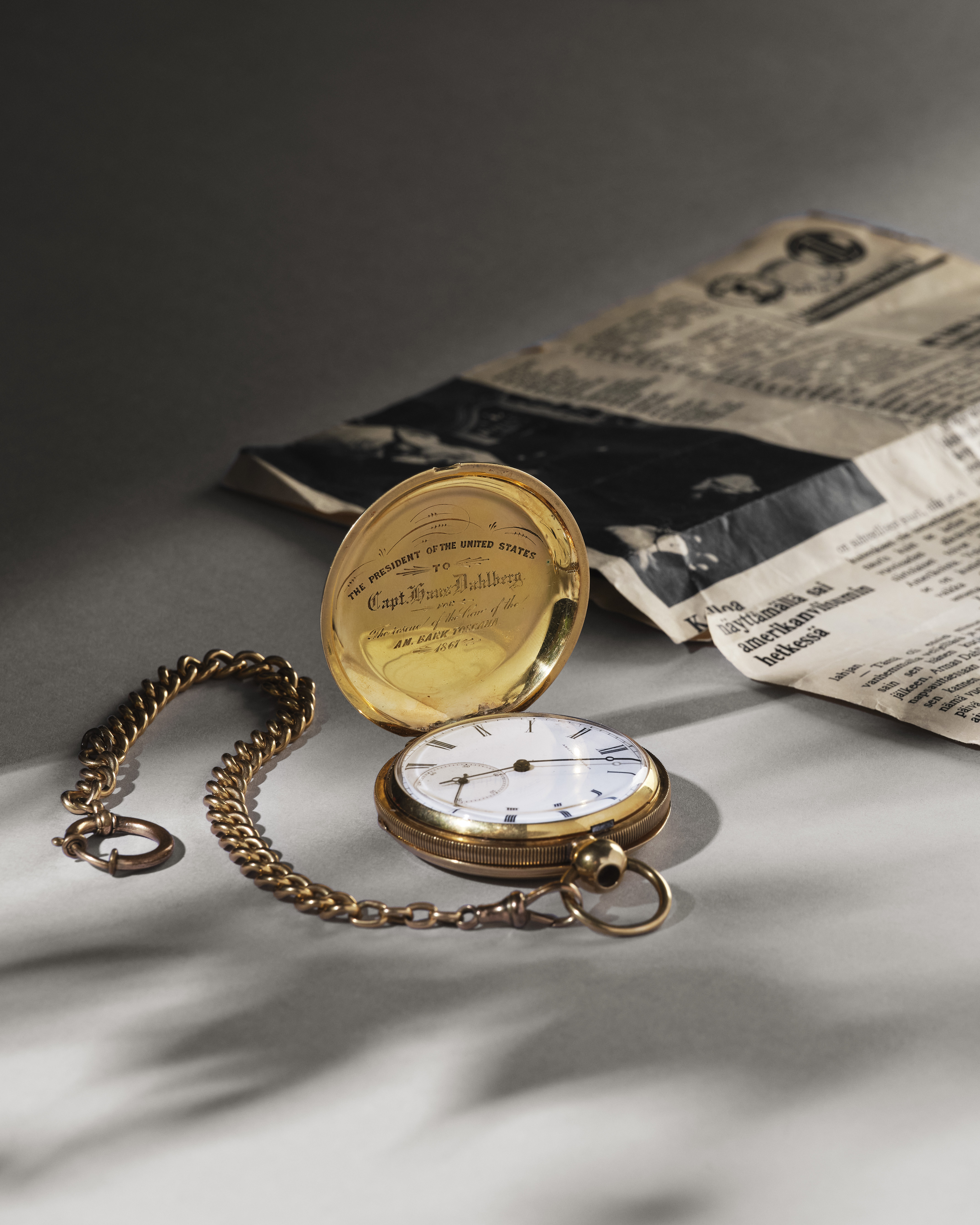 Liveauktionen erbjuder även armbandsur med spännande proveniens såsom en Omega Speedmaster med historia från det svenska flygvapnet och ett fickur med en gåvoinskription från den amerikanska presidenten.