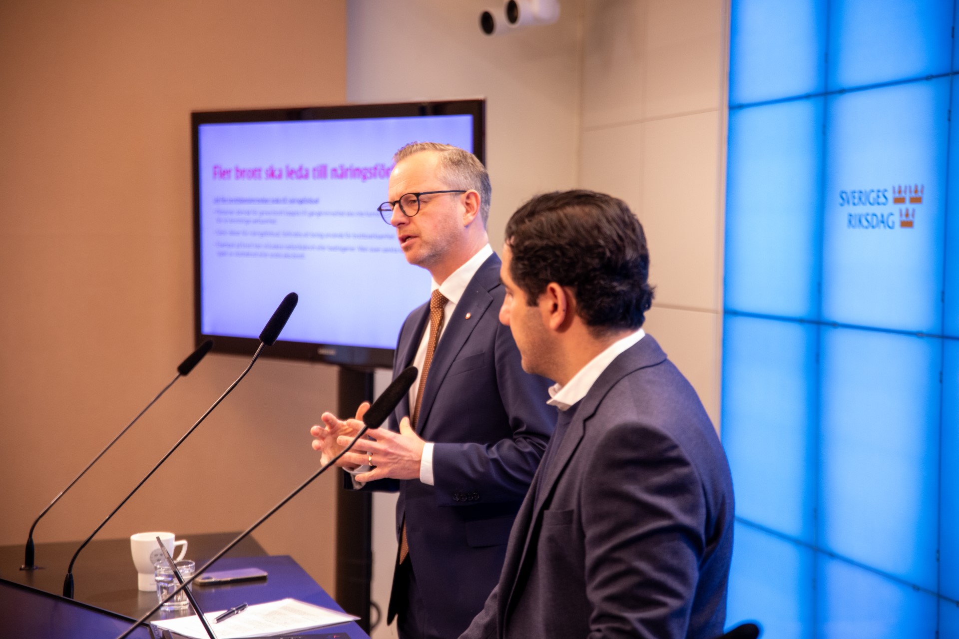 — Förutom att vi föreslår att fler brott ska leda till näringsförbud så vill vi också se en återinförd revisionsplikt, att bolagsverket ska få utökade befogenheter och att Bolagsverket ska kunna begära personlig inställelse. Regeringen har lagt fram vissa åtgärder för att stävja den ekonomiska brottsligheten, men betydligt mer måste göras. Här är några förslag som de kan gå vidare med ganska omgående, säger Mikael Damberg, ekonomiskpolitisk talesperson för Socialdemokraterna.