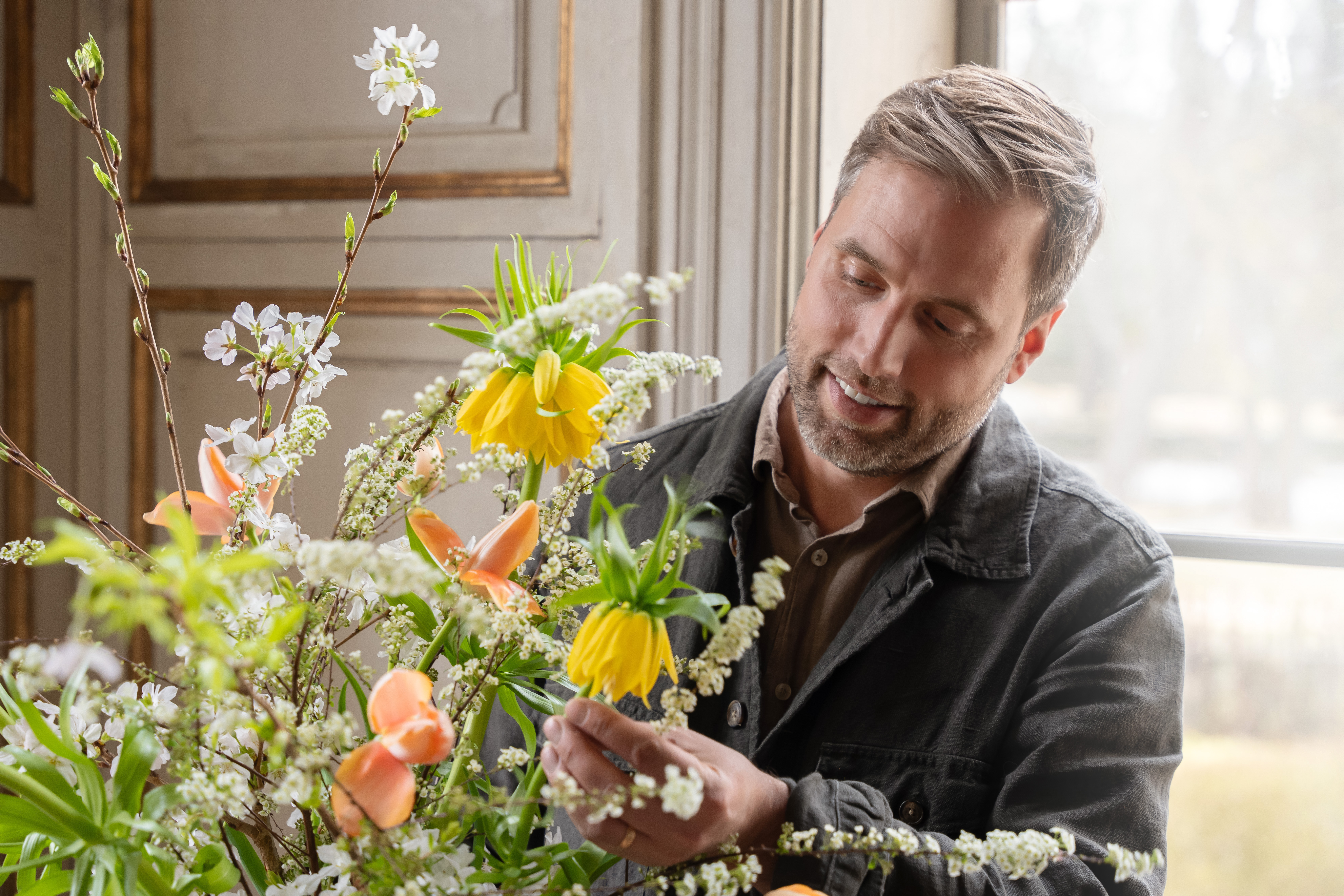 “Maj är min absolut bästa månad. Naturen vaknar, exploderar och blir fulländad under bara några veckor. Ingen annan tid på året blir buketterna så vackra som nu, i hänryckningens tid”, säger floristen Johan Munter. I maj sätter han sin prägel på Skansens 1700-talsherrgård Skogaholm med utställningen Blomster i hänryckningens tid.