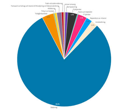 Städtjänsterna står för 80 procent av alla köp som utförts första kvartalet, närmast följt av trädgårdstjänsterna på 4,1 procent.