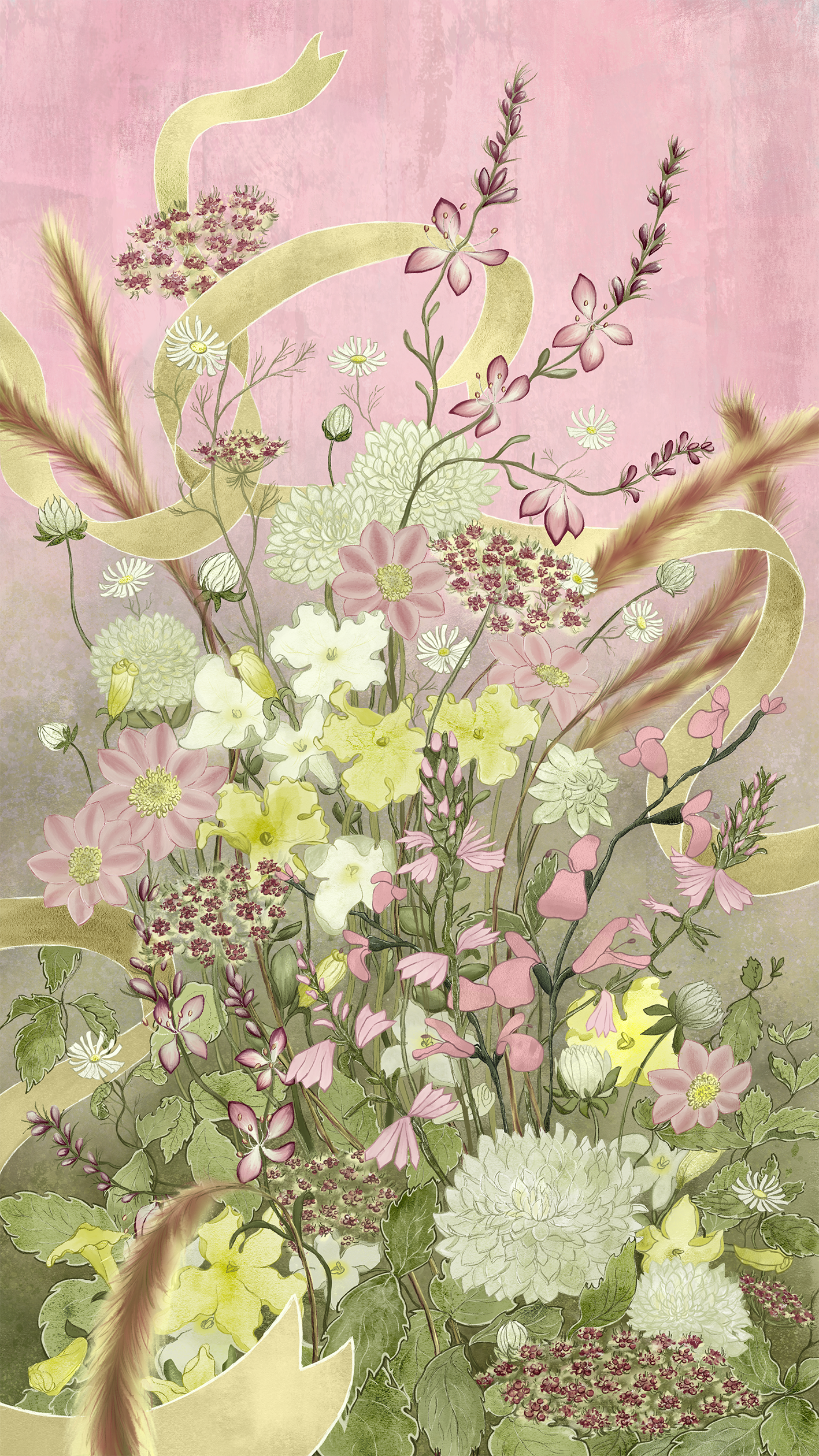 Genom luftiga rosa blomsterkompositioner, med accenter i vitt och ljusgult som ett förenande band, sprider årets tema kärlekens budskap. Klassiska blommor som petunior och dahlior vävs samman med lekfulla vippor av gräs och brokiga blad till en harmonisk helhet.