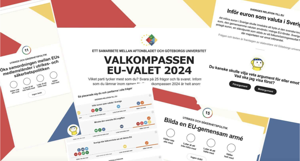 Aftonbladet presenterar idag, i samarbete med SOM-institutet vid Göteborgs universitet, EU-valkompassen för att guida väljarna inför valet. Aftonbladet har en lång tradition av att utveckla egna unika valkompasser tillsammans med institutet och – varje gång till nytta för miljontals svenska väljare som väljer att ta hjälp av kompassen.