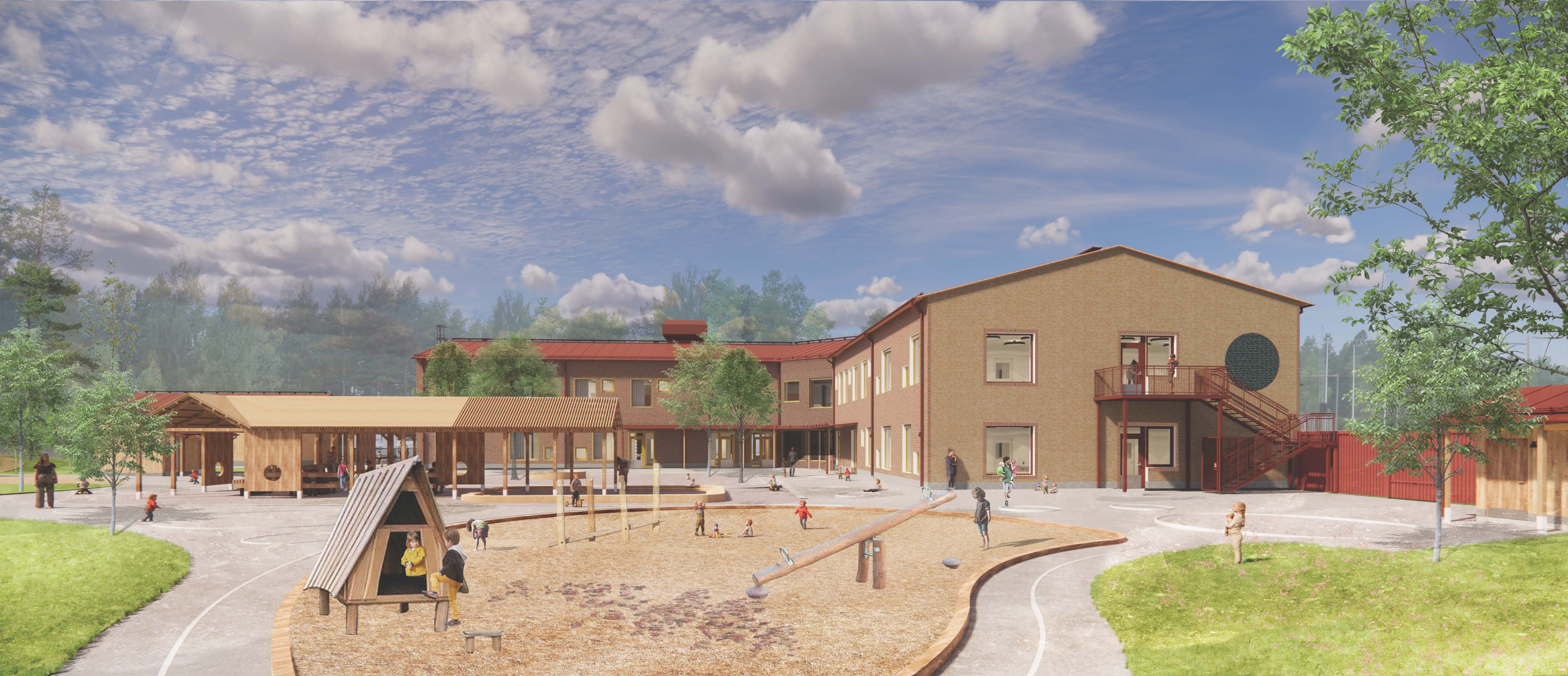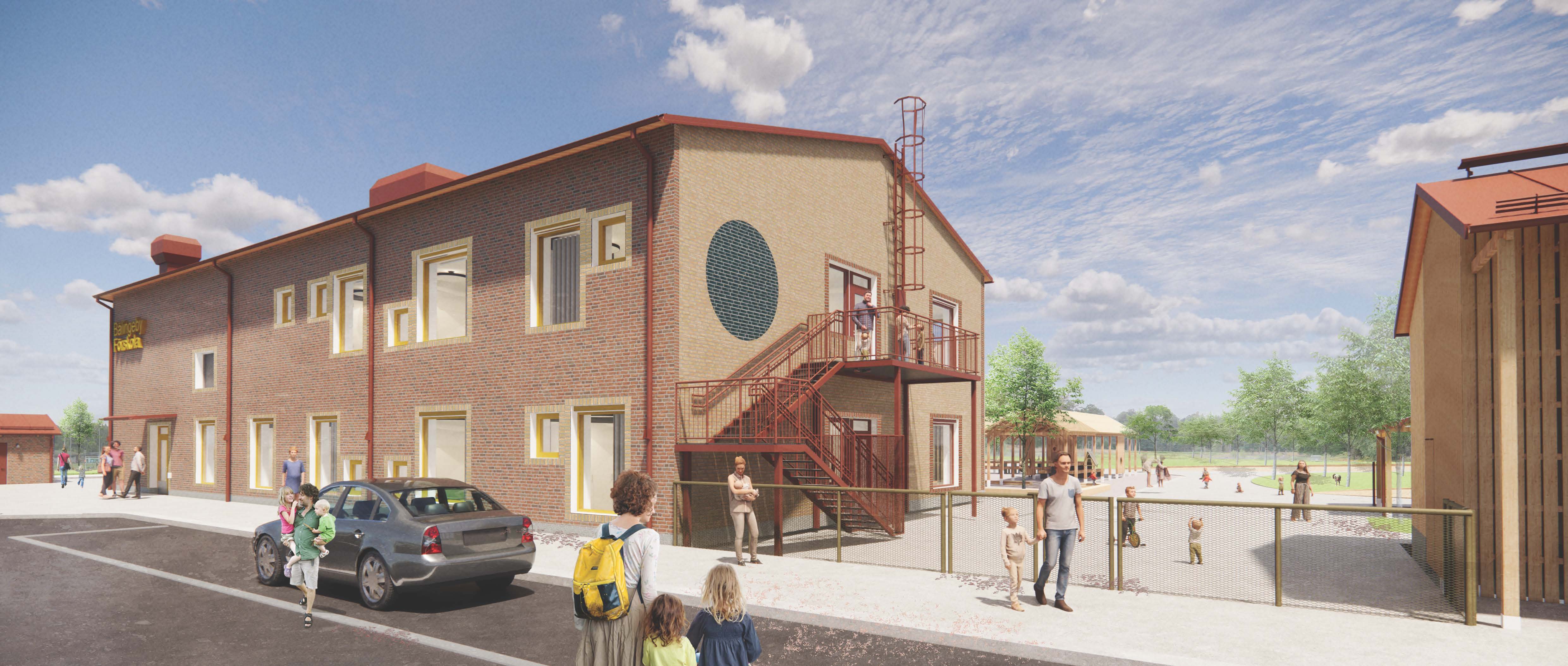 Skolfastigheter samverkar med entreprenören ByggConstruct AB i bygget av Bälingeby förskola. Byggnaden är ritad av LLP Arkitektkontor AB och utemiljön har skapats av Nivå Landskapsarkitektur.