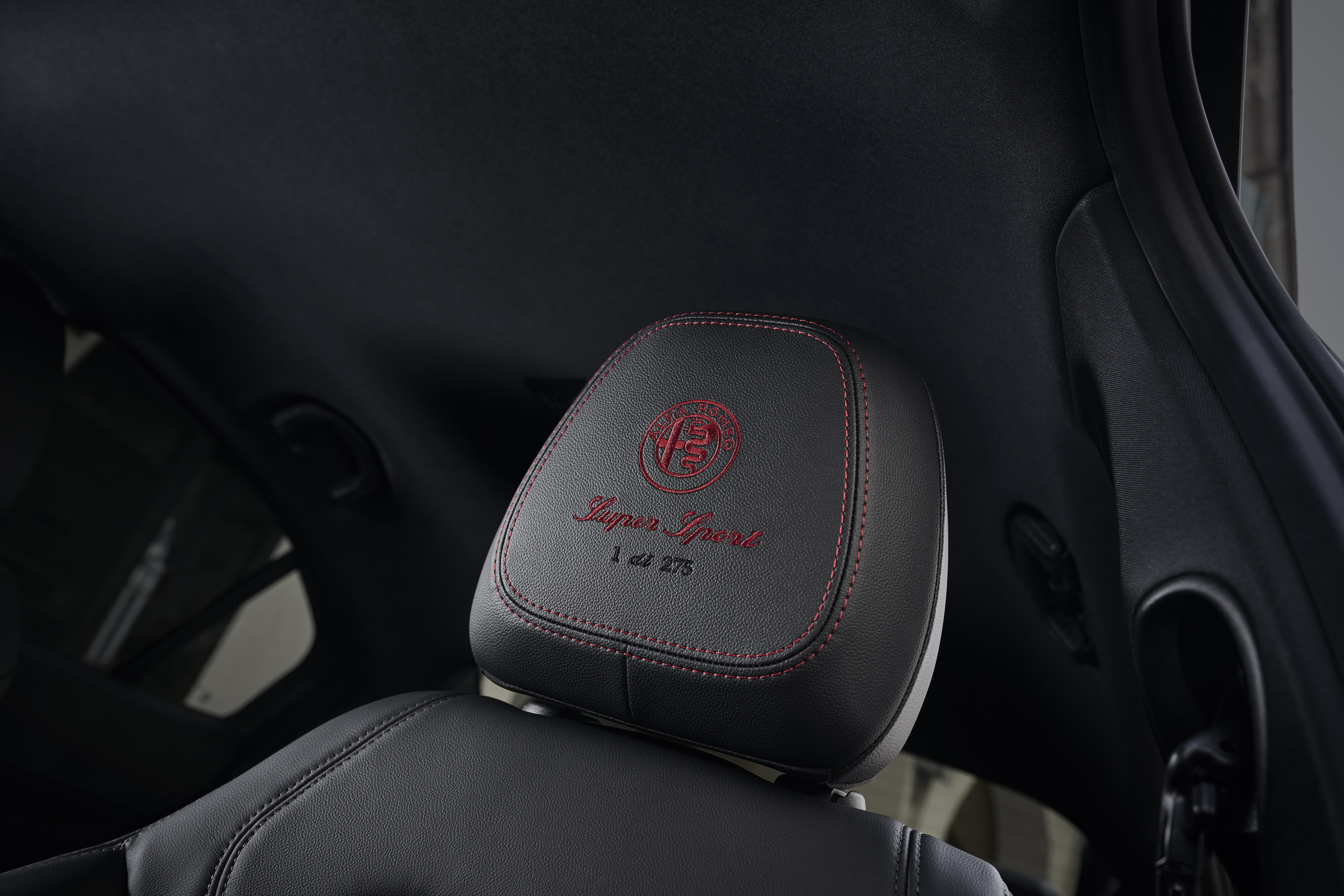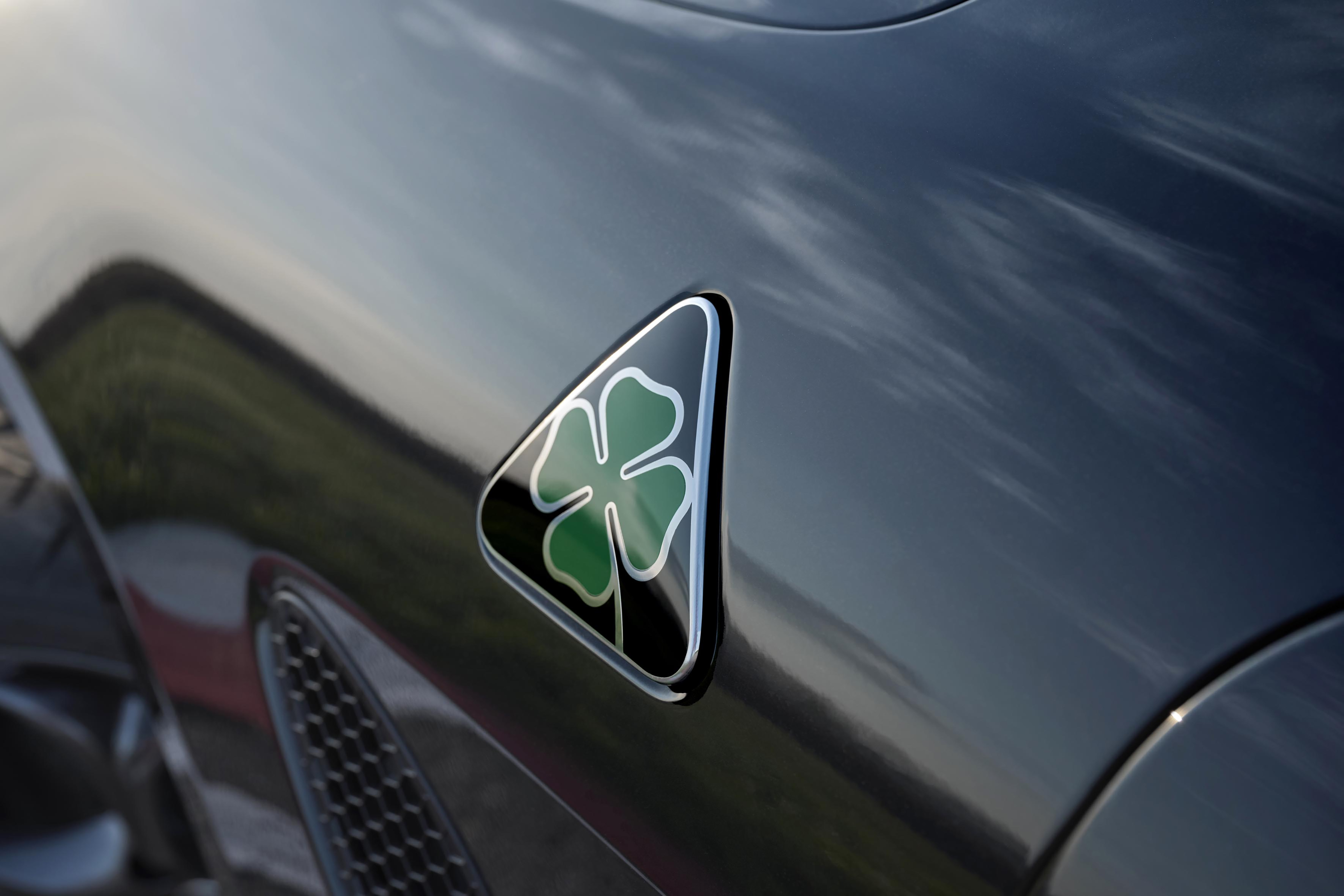 • För denna specialutgåva har Alfa Romeo Centro Stile arbetat med en djärv omgestaltning av Quadrifoglio-logotypen, nu med svart bakgrund för första gången på över 100 år av dess historia.