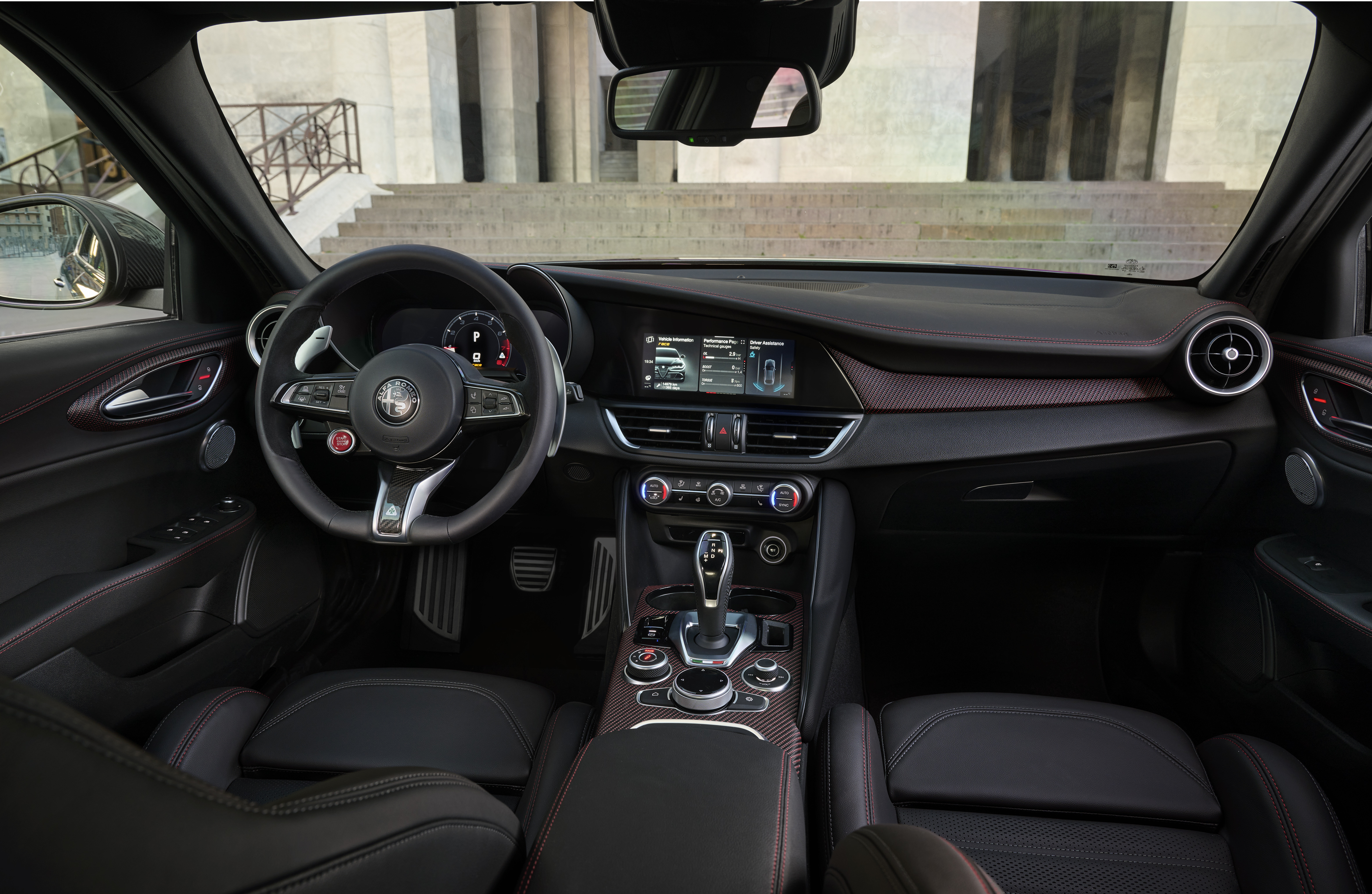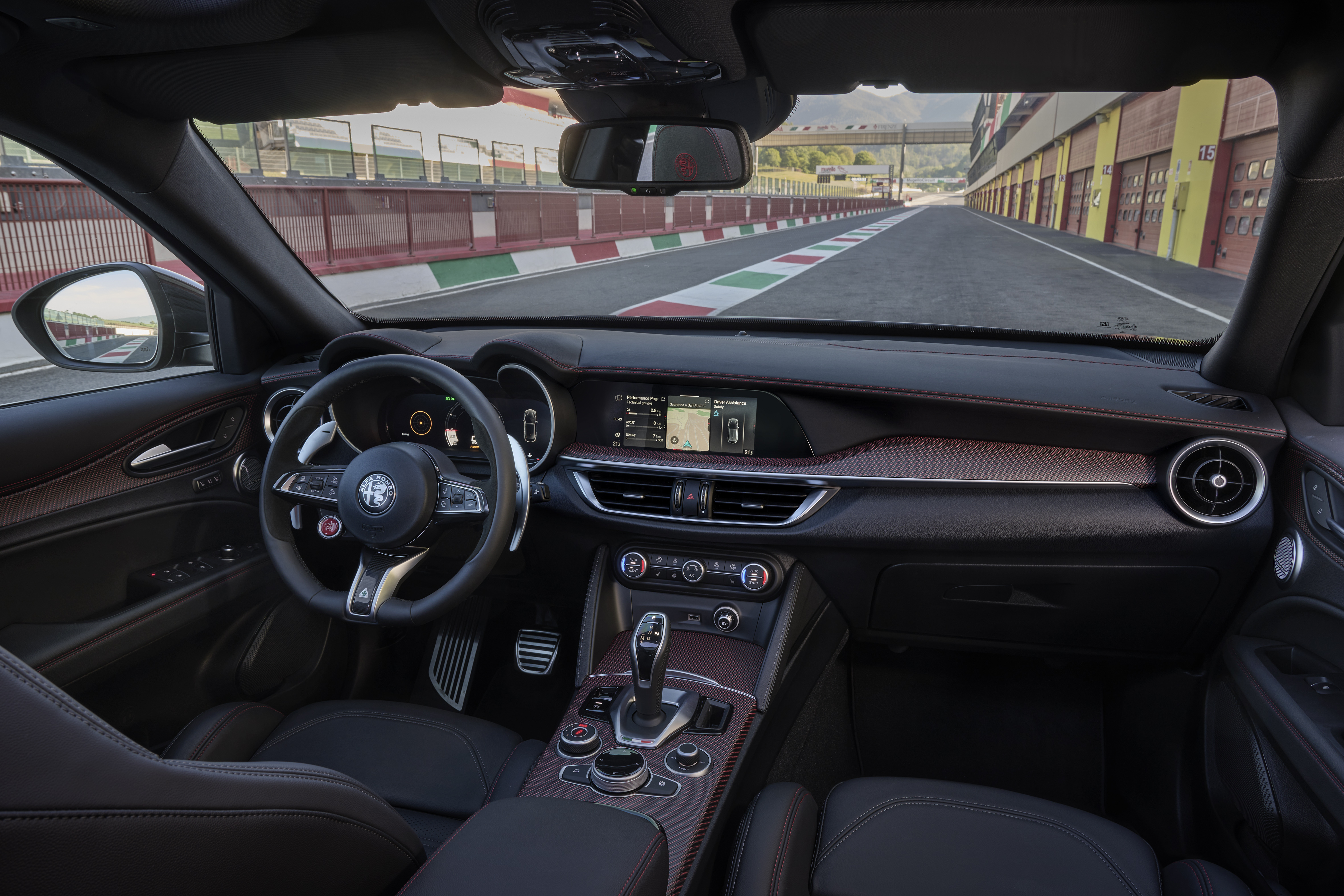 Giulia och Stelvio Quadrifoglio Super Sport är resultatet av sekel lång strävan efter teknisk excellens applicerad på tävlings- och produktionsbilar. Den hyllade 2,9-liters V6-motorn levererar 520 hk och kombineras med mekanisk differentialbroms. Tack vare användningen av ultralätta material som aluminium för motorn och kolfiber för bl.a kardanaxeln och motorhuven erbjuder Quadrifoglio en unik och klassledande kördynamik.I Giulia förblir aerodynamiken aktiv tack vare den främre kolfibersplittern som aktiveras för att öka stabiliteten och prestandan. Slutligen, men inte minst, Akrapovič avgassystem, för dess omisskännliga ljud.