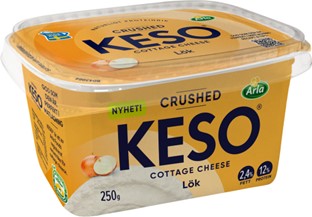 KESO® Cottage cheese crushed lök är det senaste tillskottet i Crushed-sortimentet som är en finkornig och slät variant av KESO®. Den nya smaken av lök är mild och mångsidig och passar toppen som pålägg, dipp och i olika maträtter.