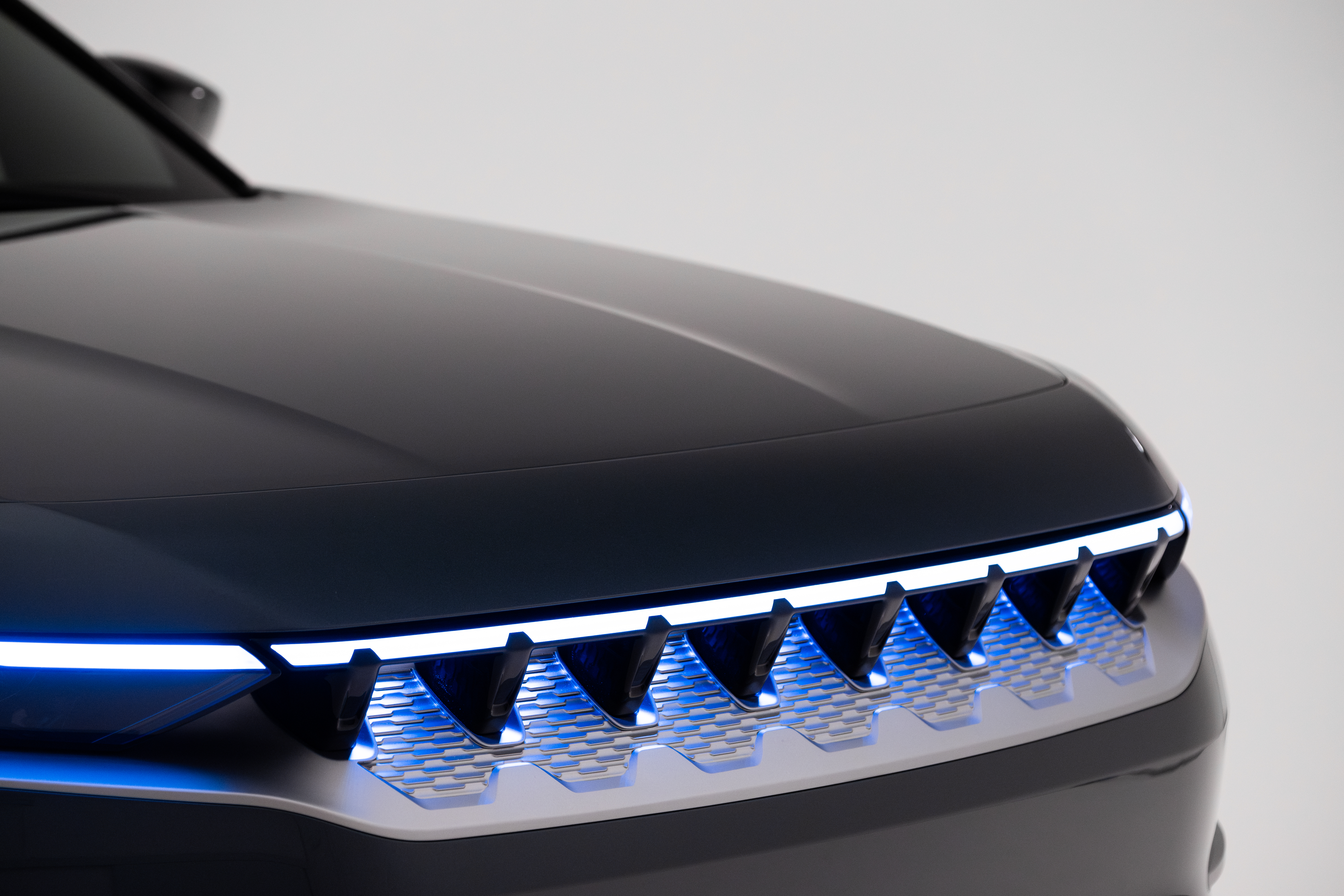 Aerodynamik en avgörande komponent i den övergripande designen hos ett helelektriskt fordon.Jeep-designerna och ingenjörerna satte upp aggressiva mål för att uppnå optimal aerodynamik för maximal effektivitet, räckvidd och prestanda samtidigt som man behöll ett elegant premiumutseende. Genom att använda toppmoderna verktyg och en rigorös test- och utvecklingsprocess, inklusive avancerade vindtunnlar, uppnådde teamet ett luftmotståndskoefficient (CD) på 0,29, vilket är den lägsta CD någonsin för ett Jeep-fordon och cirka 15 % bättre än den genomsnittliga suven.