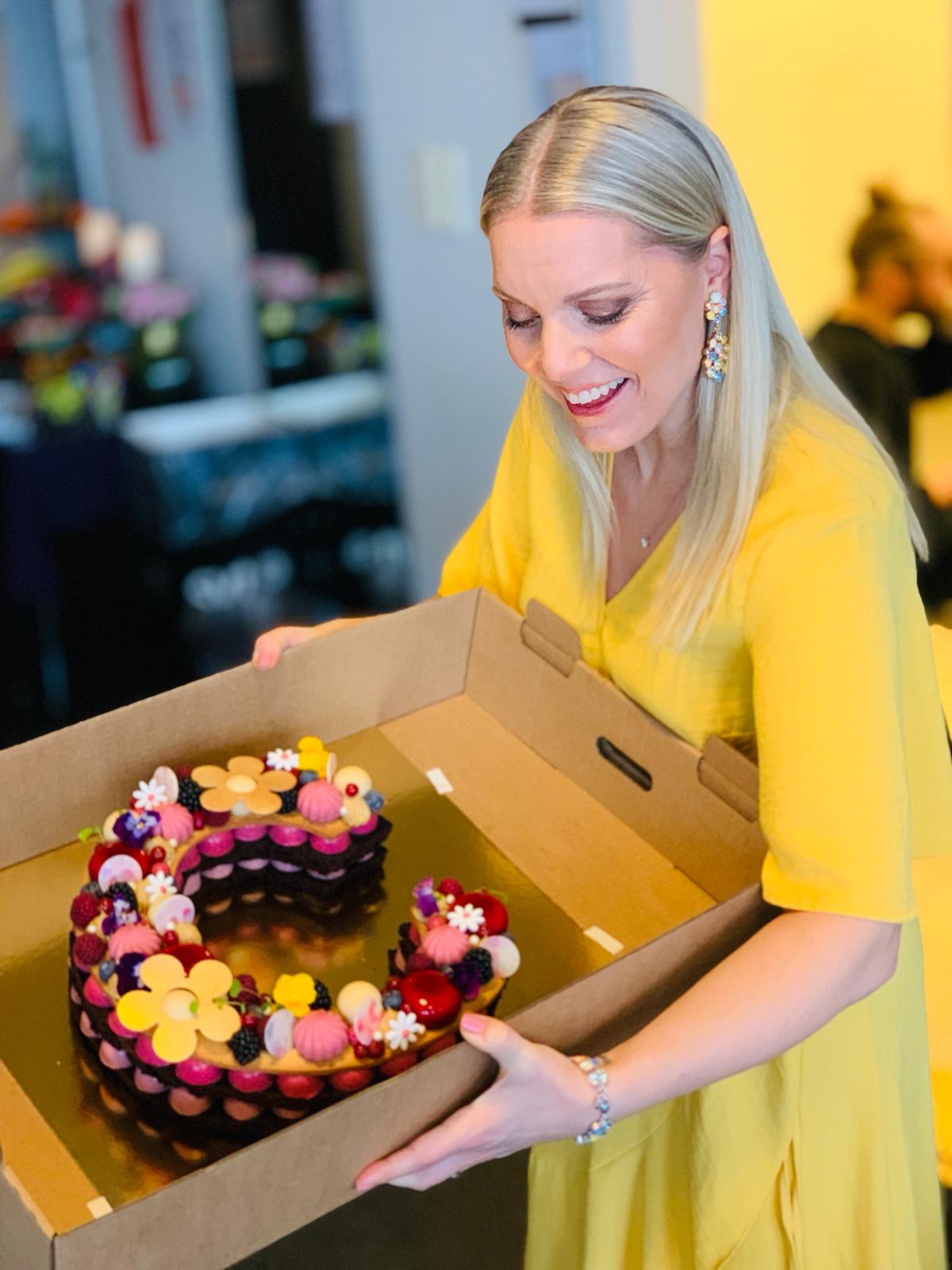 ”Jag bad konditorn Daniel Roos, som skapat Nobeldesserten, att göra ett stort C med olika dekorationer”, säger Sofie Sarenbrant. ”Men säkerhetsvakterna på SVT vägrade släppa in mig om de inte fick skicka in tårtan i röntgenmaskin – och därmed förstöra den. Efter blod, svett och tårar fick jag till slut igenom tårtan oskadd.”