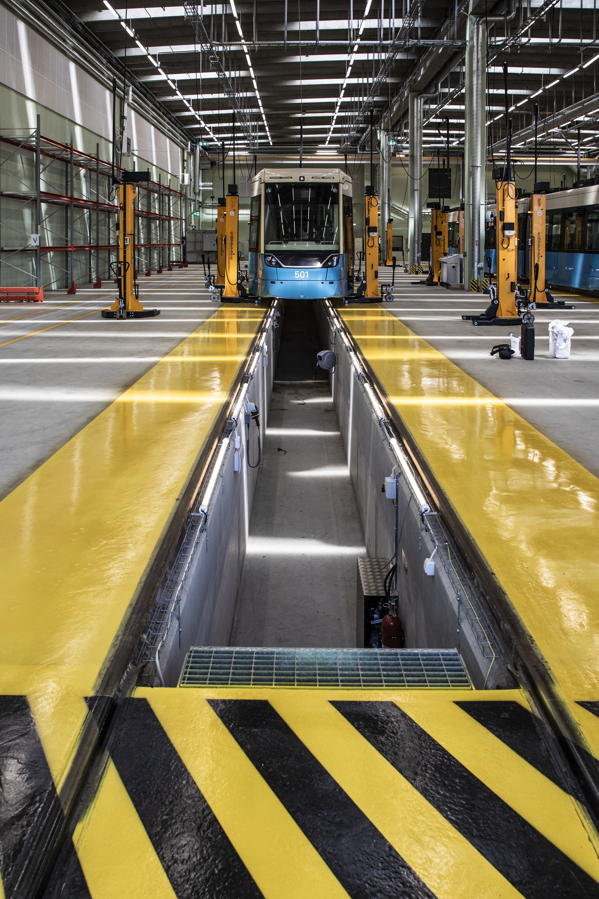 Arbetet med att bygga upp spårvagnsdepån har skett i två etapper. Den första etappen blev klar i 2020. Den består av ett skärmtak för uppställning och servicehall. Den andra etappen blev klar i början på mars i år och innehåller plats för uppställning, drift- och underhåll av spårvagnar och kontorslokaler.
