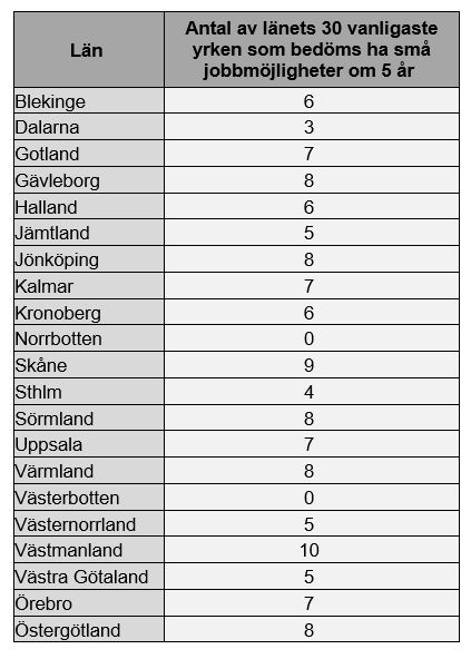 Dåliga jobbutsikter för 9 av Sveriges 30 vanligaste yrken