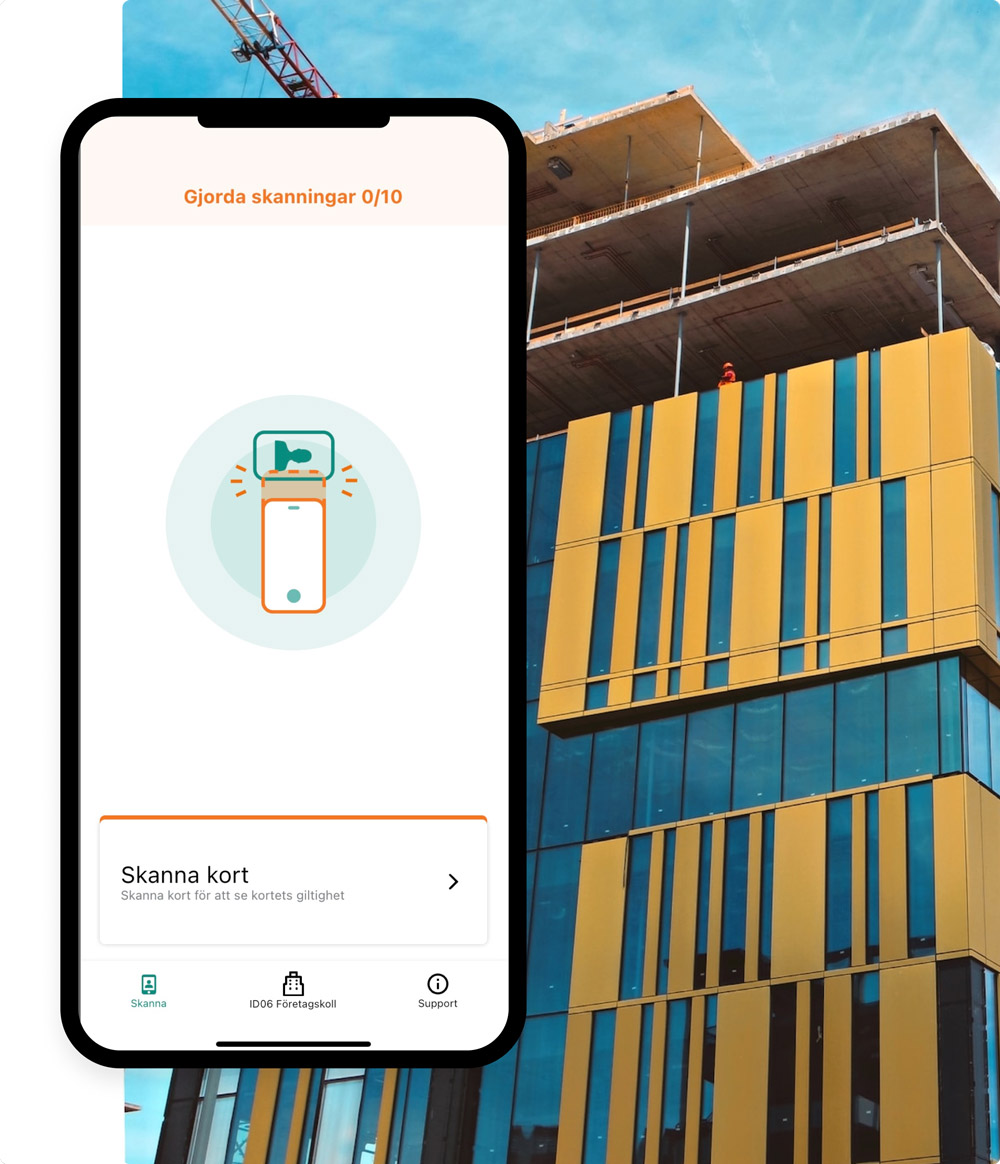Med ID06 Status Control kan du skanna ett ID06-kort med din mobiltelefon. Appen visar sedan om kortet är giltigt och vilka utbildningar och behörigheter som personen har registrerade. Det här är extra viktigt för bland annat jobb som berör el eller våtrum där rätt utbildning krävs för installatören. Skulle något gå fel kan det vara så att försäkringar inte gäller om personen inte har rätt kunskap.