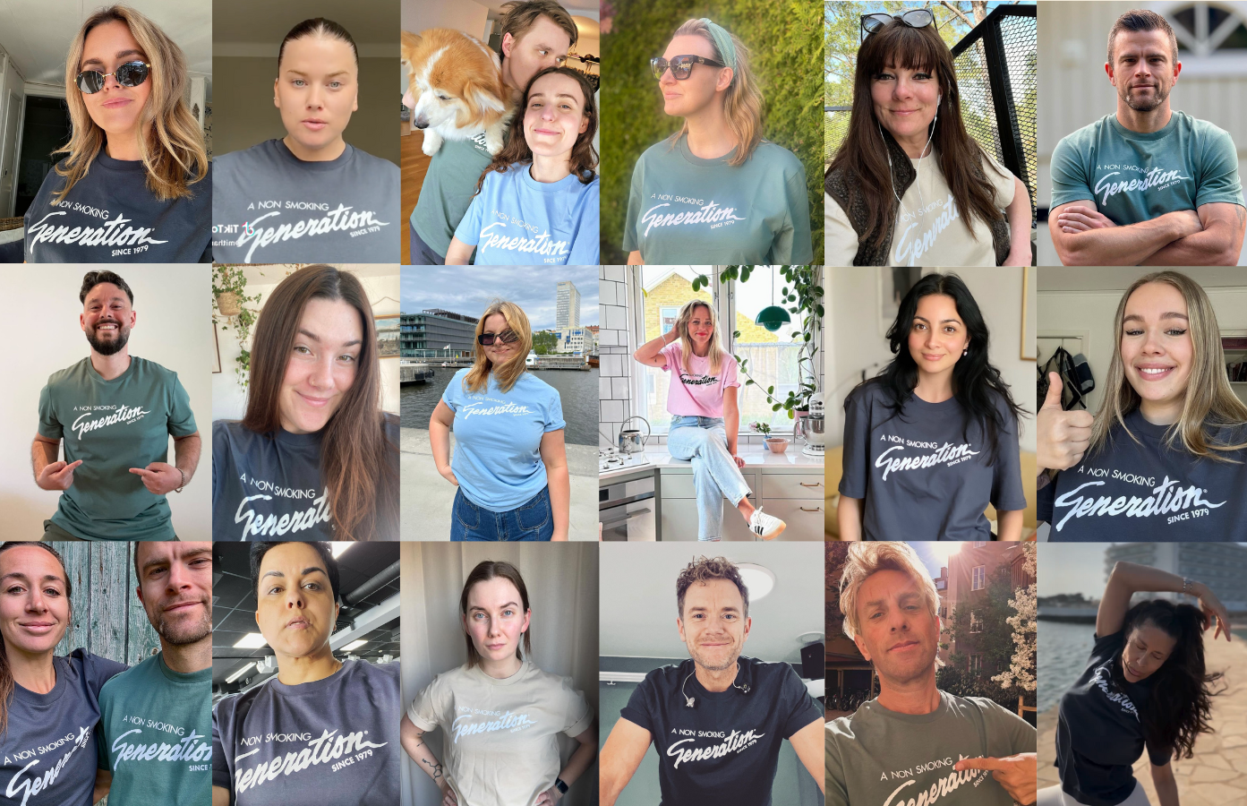 Under maj 2024 har ett 30-tal inflytelserika profiler tagit ställning för A Non Smoking Generation och barn och ungas rätt till ett nikotinfritt liv. Allt ifrån artister, skådespelare, influencers och TV-personligheter delar bilder och videor på Instagram och TikTok för att sprida kunskap och uppmärksamma tobaksindustrins oetiska strategier i samband med World No Tobacco Day.