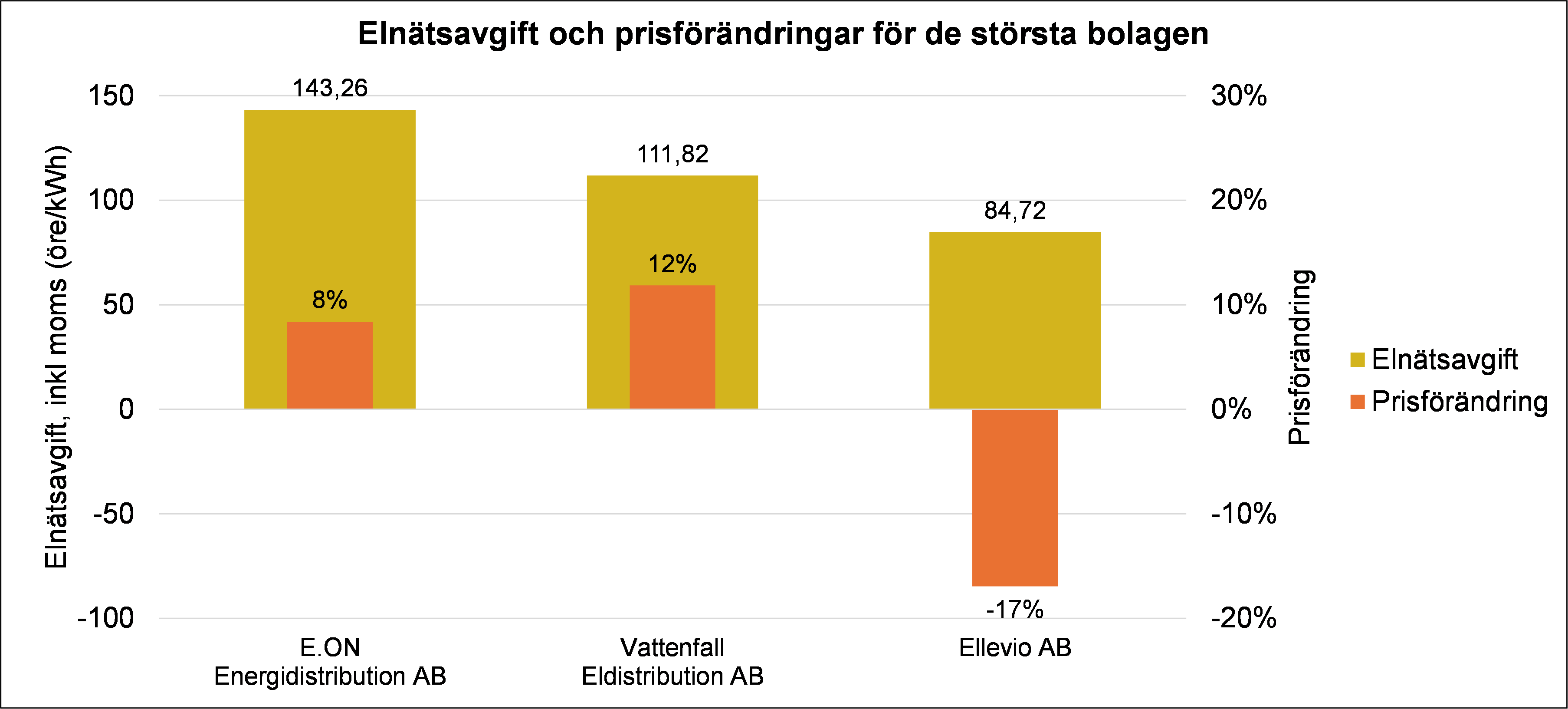 Figurerna nedan visar elnätsavgifter för de billigaste och dyraste kommunerna i Sverige, de kommuner där prisförändringen varit som störst och en jämförelse mellan de tre största nätbolagen i Sverige.