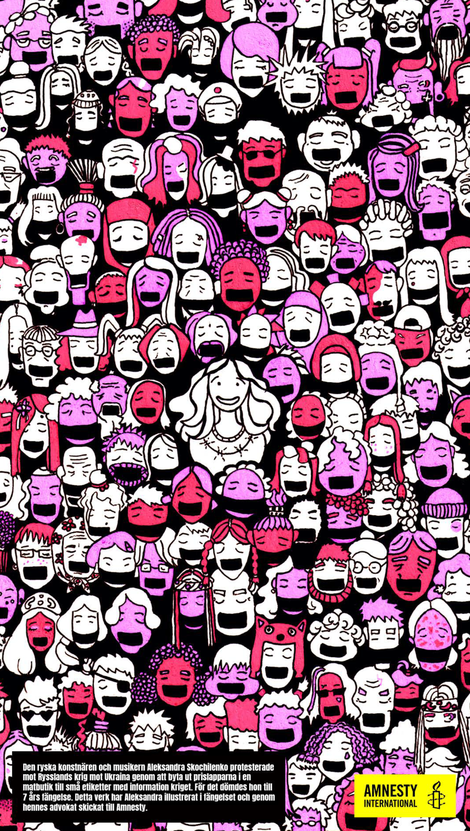 Artwork till Amnesty Live 2024 – Bring The Noise är gjort av den ryska konstnären, musikern och aktivisten Aleksandra Skochilenko. Efter att våren 2022 ha protesterat mot Rysslands invasion av Ukraina genom att byta ut prislappar på varor i en lokal matbutik med information om kriget greps hon och dömdes till sju års fängelse för att ha ”spridit medveten falsk information om Rysslands väpnade styrkor”.