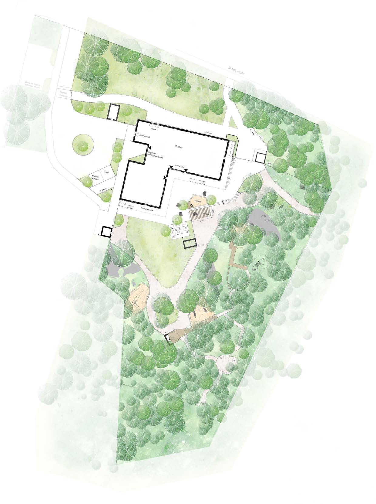 Naturliga grönområden och gröna lösningar ramar in den nya förskolan
