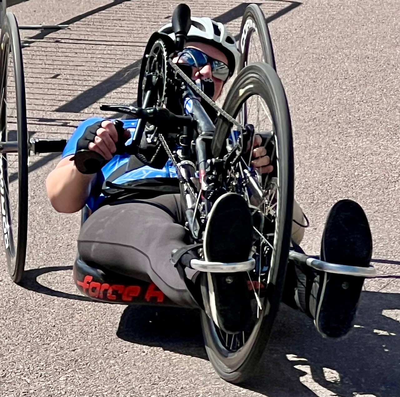 Hon hade ett väldigt fint flyt i åkningen på sin liggcykel där det inte direkt är lätt att manövrera mellan kravallstaketen vid smala partier, som hamnpromenaden.