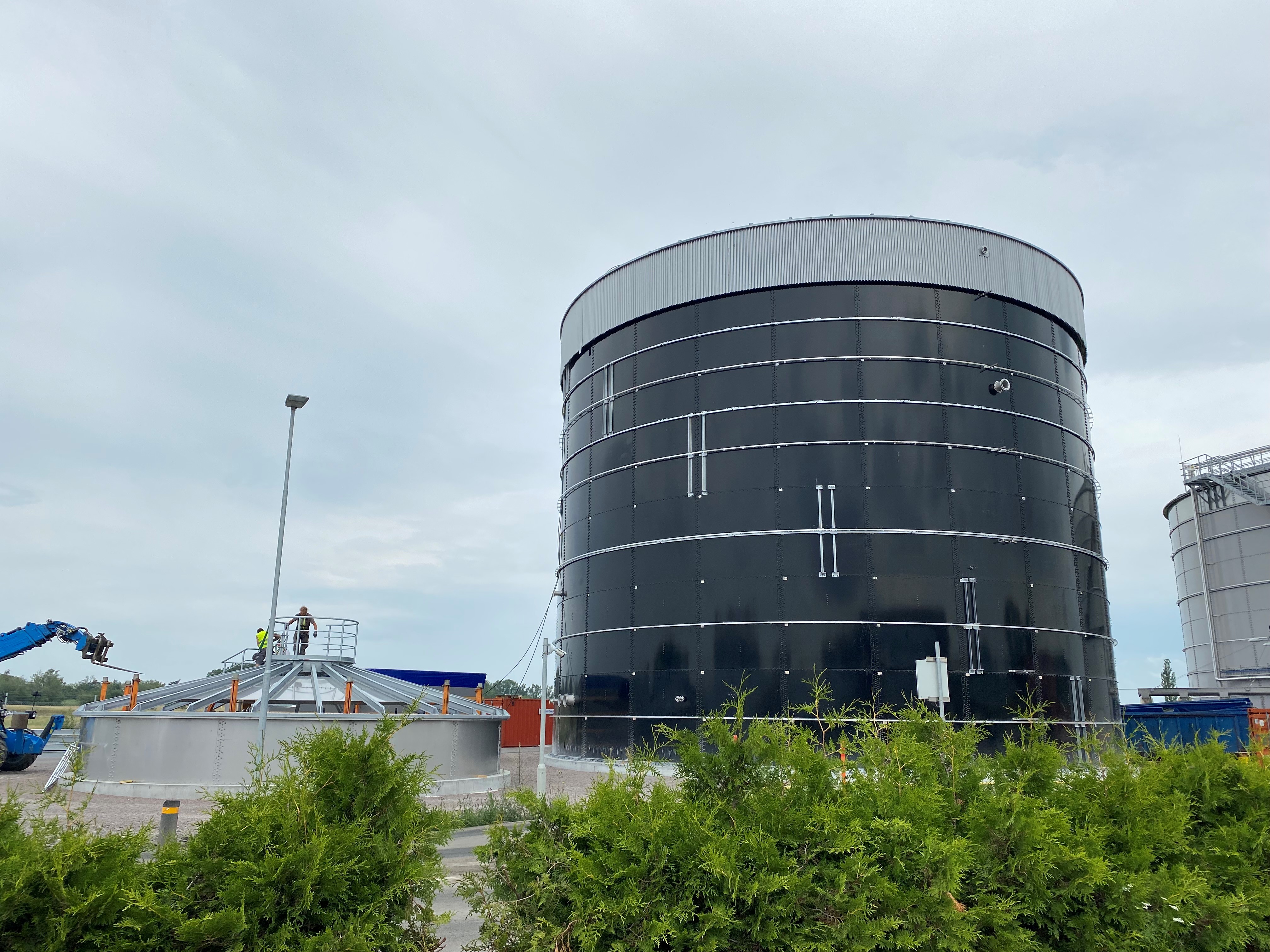 – Vi är i läget att tanken har sin slutgiltiga höjd medan viss utrustning återstår att montera, så just nu har det öppnat sig en tidslucka då det finns möjlighet att gå in i den tomma tanken. Den rymmer omkring 6000 m3, med ljus som silar in från taket och har en slående akustik så det är en häftig upplevelse att komma in och se hur den ska fungera. När den väl fylls med vatten för täthetsprovning och sedan med material som ska processas finns det sedan inga framtida möjligheter att gå in i tanken, säger Anna Lövsén, vd Svensk Biogas och affärsområdeschef Biogas, Tekniska verken.
