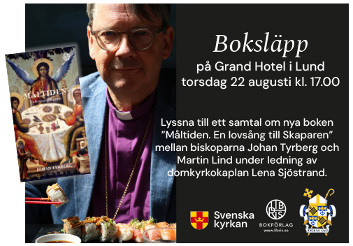 Lunds stifts biskop Johan Tyrberg släpper sin fjärde bok den 22 augusti i samband med ett offentligt samtal på Grand Hotel i Lund. Huvudtemat för boken är måltiden i biblisk och mellanmänsklig betydelse.