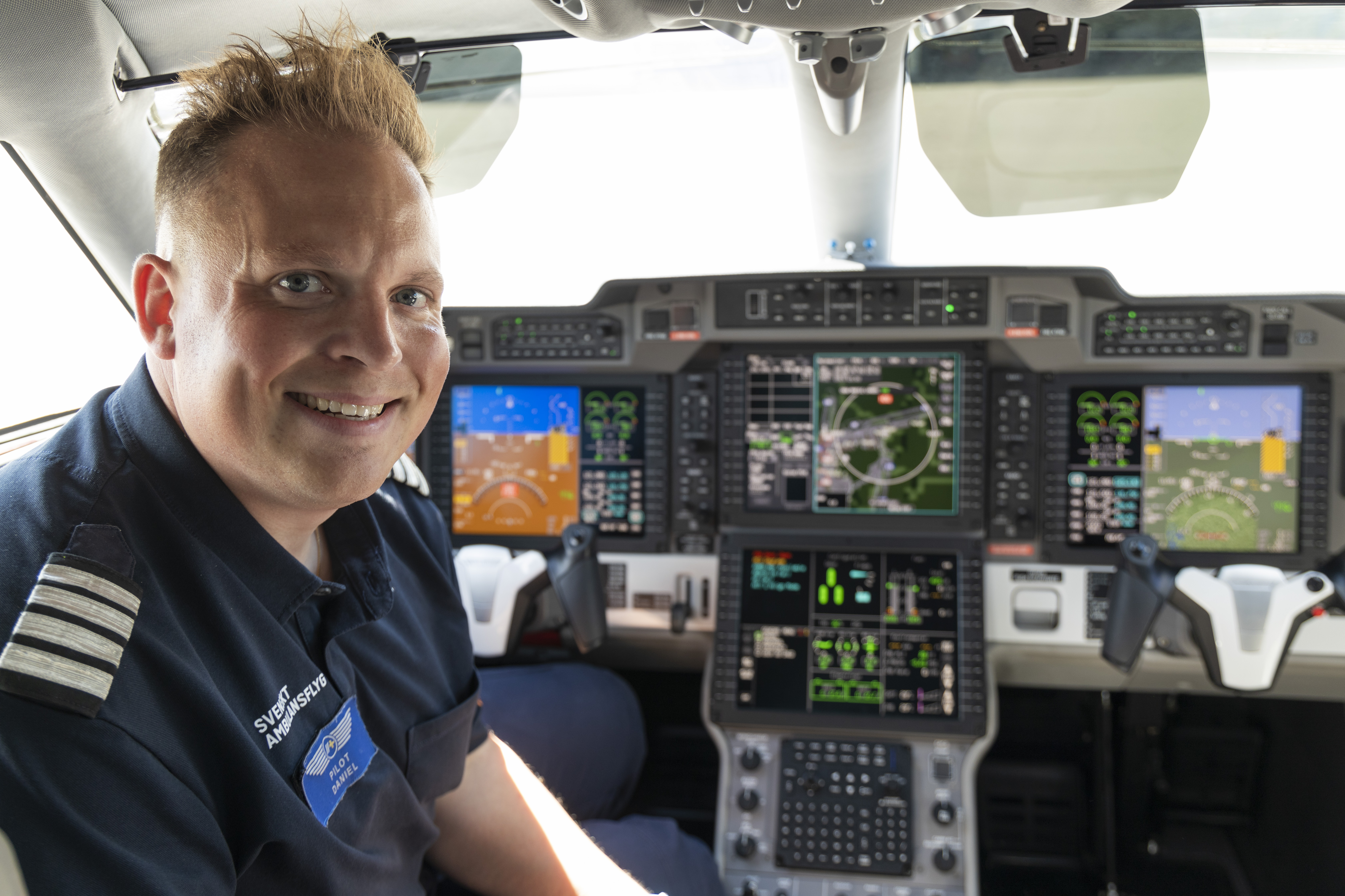 Kapten Daniel Hägg är känd inom Svenskt Ambulansflyg och av samarbetsparter för sin smittande entusiasm. Han fullkomligt älskar sitt jobb och att flyga. Under uppväxt nära flygplatsen i Bromma växte drömmen om att själv få sitta i cockpit. En dröm som blev verklig.