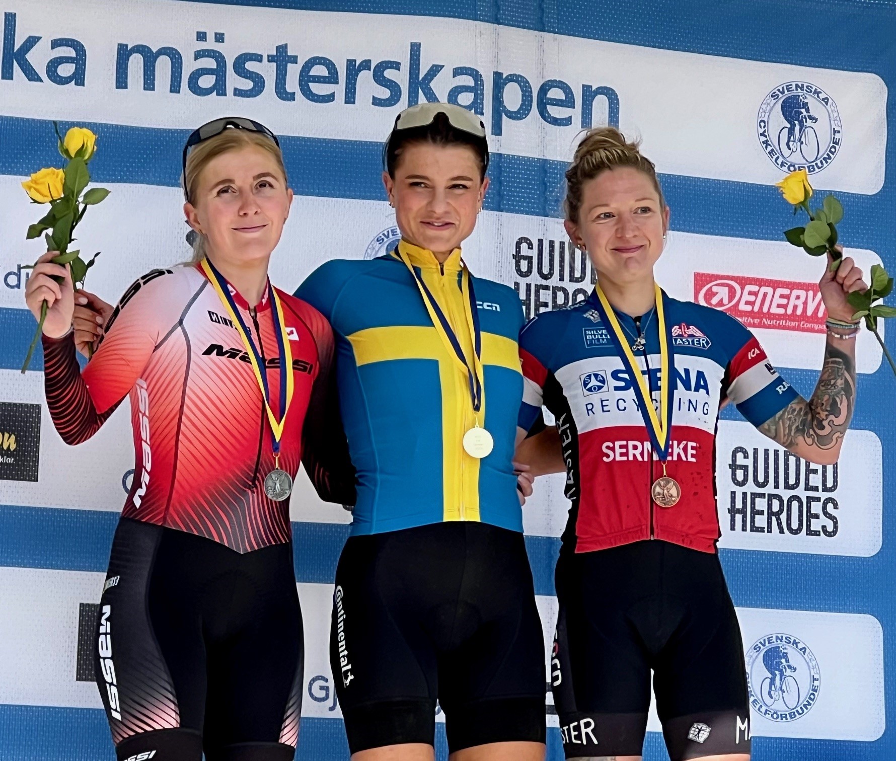 När medaljerna var utdelade i damelit på MTB-SM i Alingsås såg det ut så här: