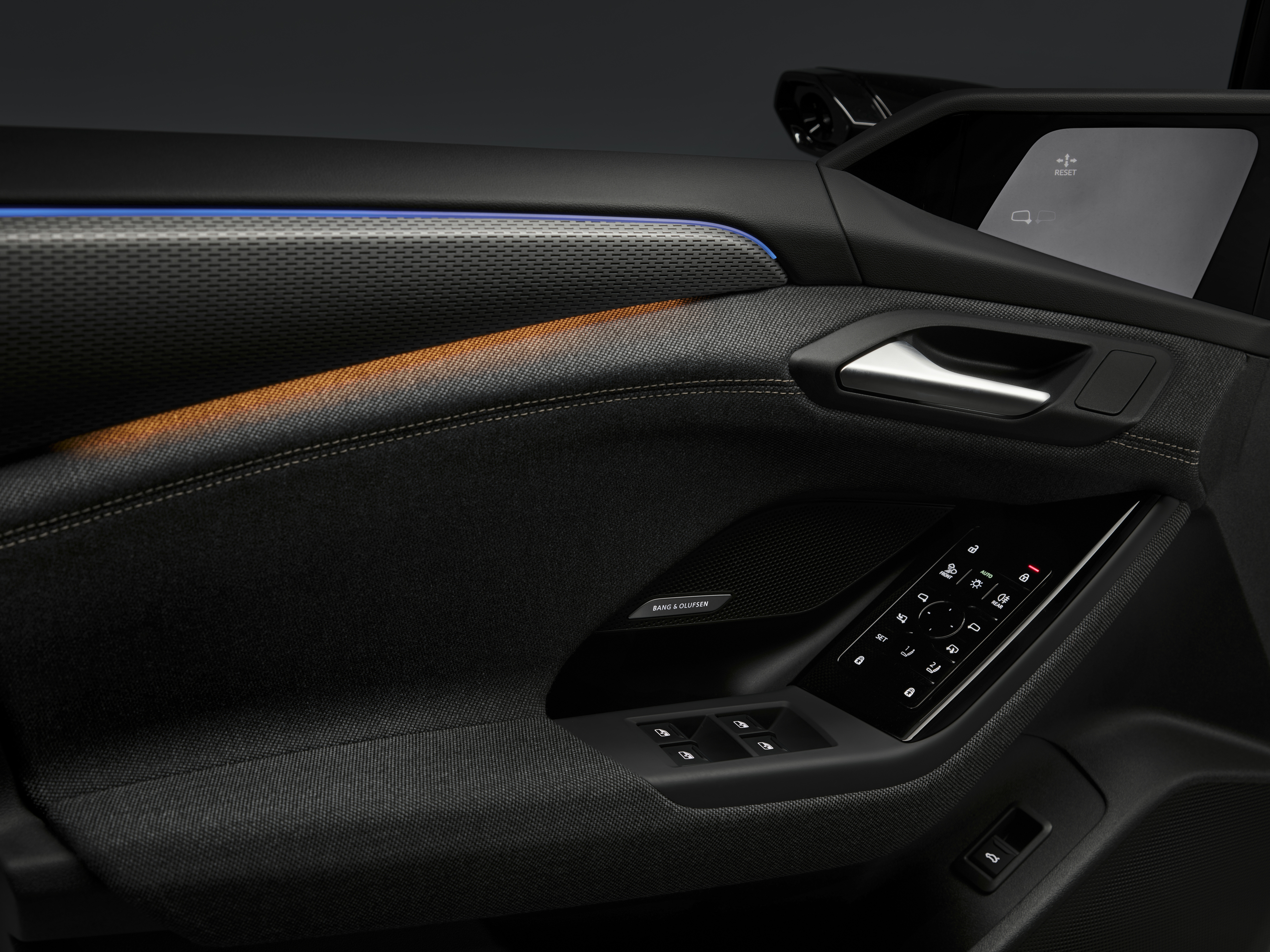 Här skapas också en digital "wrap" som sträcker sig från spegel till spegel över hela den digitala instrumentpanelen som också är ansluten via det dynamiska interaktionsljuset längst ned på vindrutan. Viktiga funktioner som spegelinställning, ljusinställning och låssystem är samlade i kontrollpanelen på förardörren. En 3-zons klimatanläggning är standard.